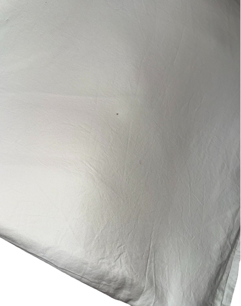 FAST SHIP. ----------------------------------- Pottery Barn 100% Cotton Duvet Cover Full / Queen Size Solid White Bedding The item has a small discoloration, which is shown in the photographs provided. Otherwise, no significant imperfections and very light evidence of use. Full/Queen size. e10604