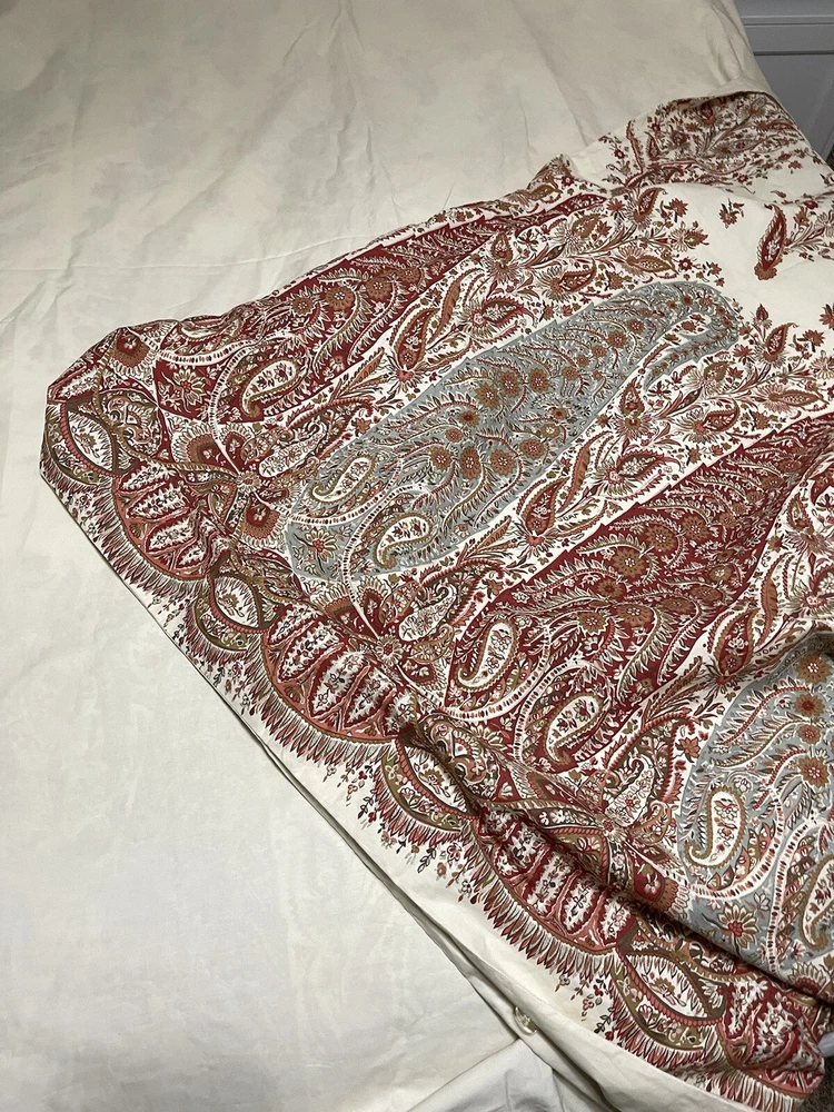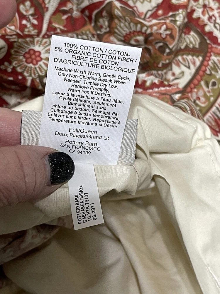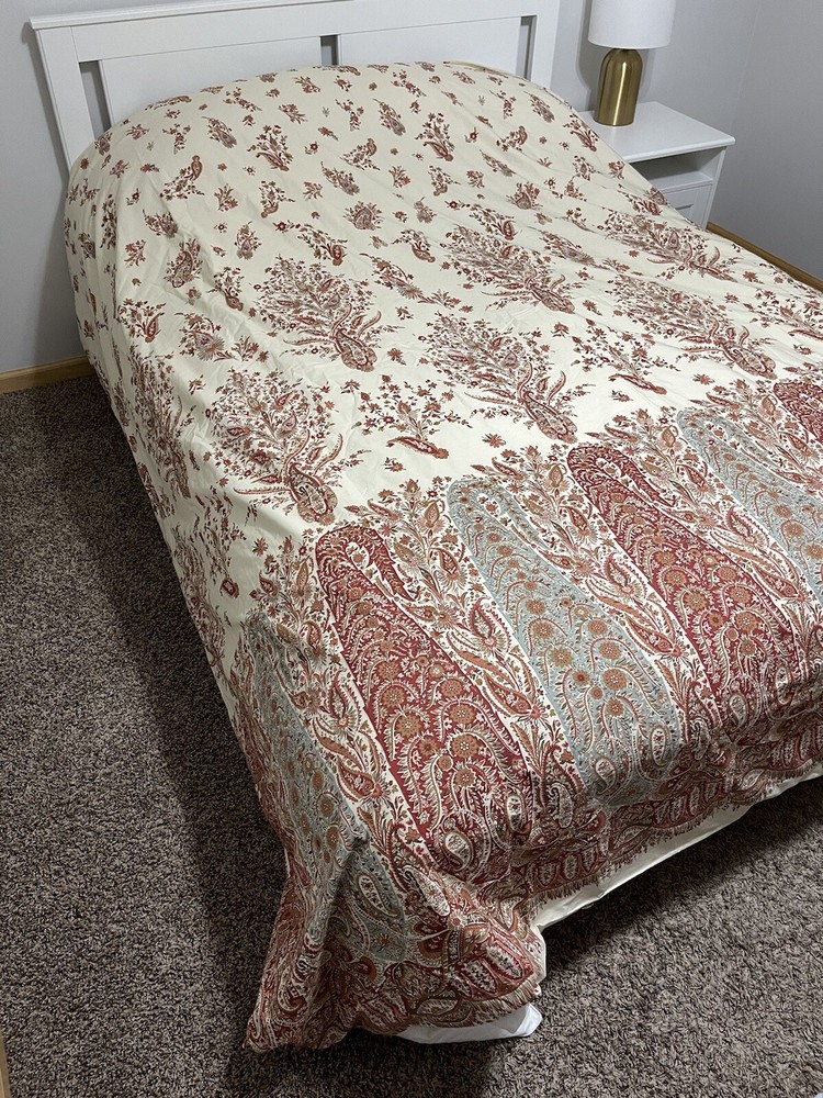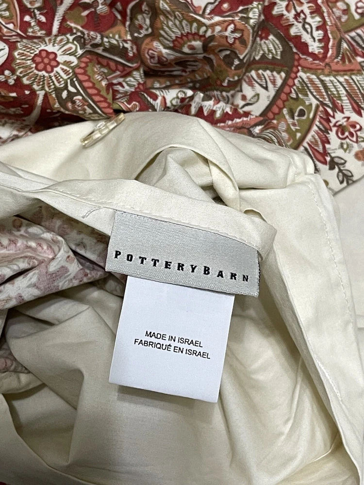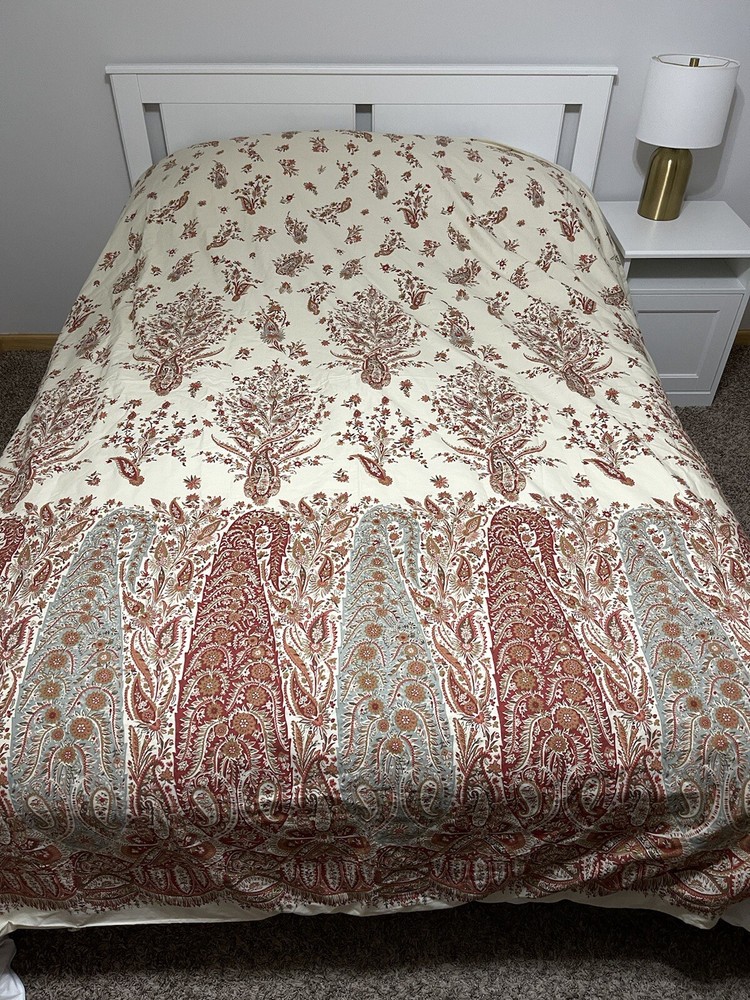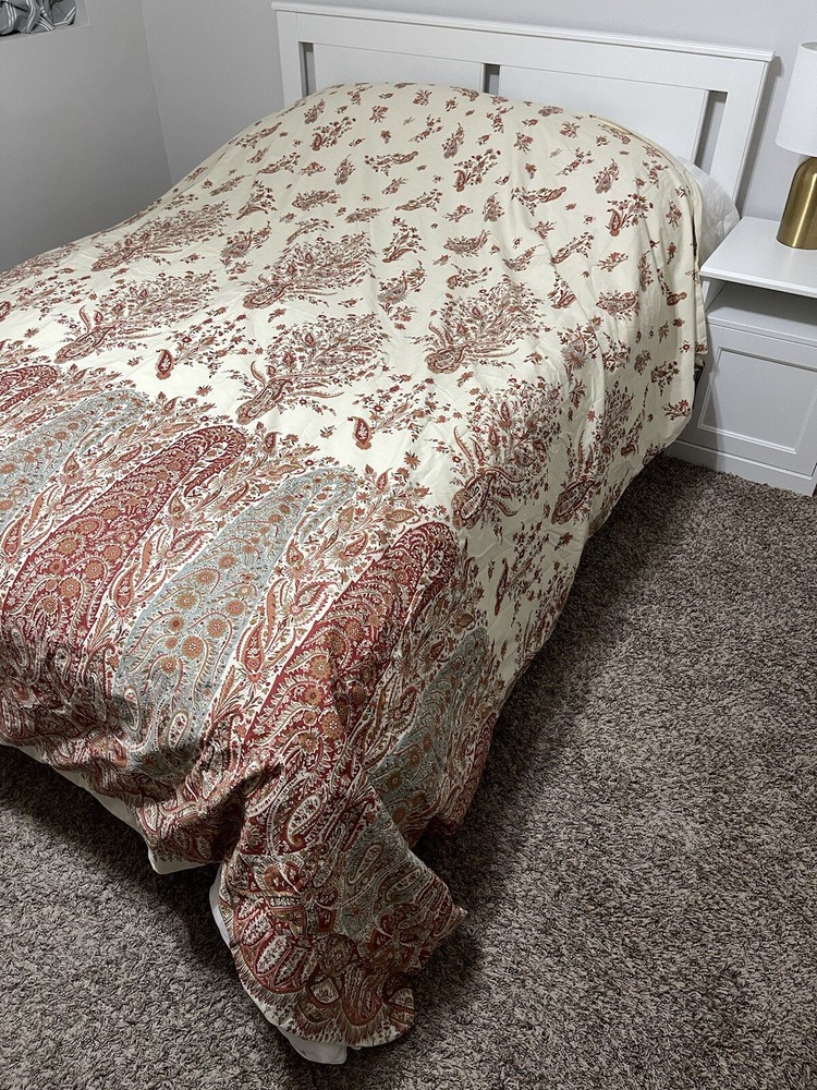 Pottery Barn 100% Cotton Full/Queen Size Duvet Cover Burgundy Tan Paisley Print Never used, removed from packaging and stored in linen closet only. Photographed on a full size bed for reference.