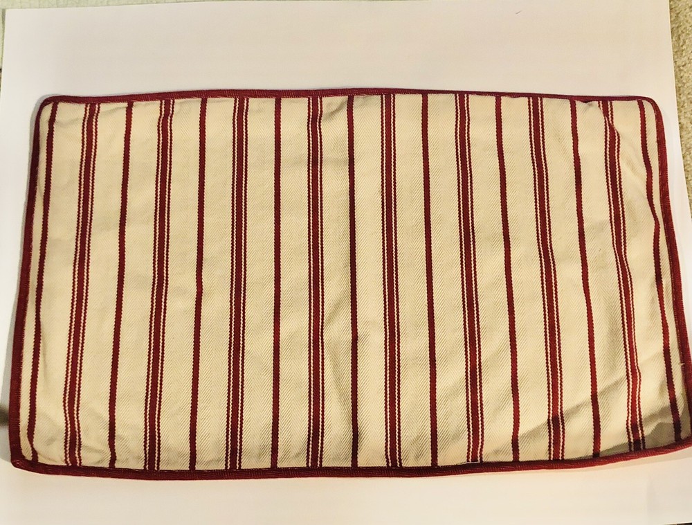 Pottery Barn 100% Cotton Throw Pillow Cover Stripes Red Tan Welt Edge 25 x 15”. No stains, rips, frays Washed and cleaned