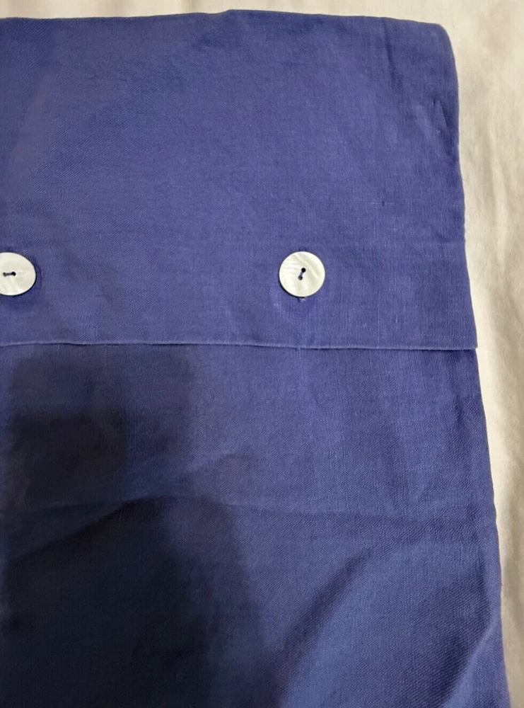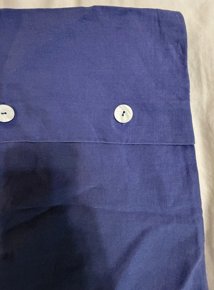 Pottery Barn 100% Linen Shams Purple White Shell Like Buttons 19"x20" Brand- Pottery Barn Material content- 100% linen, dry clean only Color- This is definitely a purple with blue undertones, like a deep periwinkle. Buttons are white with a shell look to them. Includes- 2 shams as pictured. Good pre-owned condition, no major flaws seen.