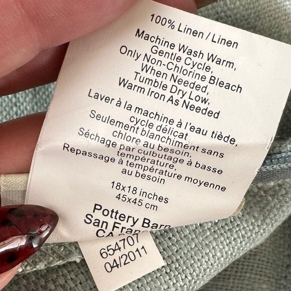 Pottery Barn 100% Linen Square Back Zip Closure 18" Pillow Cover Seafoam In great pre-owned condition. Super soft and breathable. Made from 100% linen. This pillow cover fits an 18" insert (not included). One of the great features of this pillow cover is that it is machine washable. In a pretty, neutral seafoam color. Seller Policies: Fast, reasonable shipping. I ship within 48 hours of payment. Returns accepted within 30 days in original condition. Buyer pays return shipping. Please ask questions prior to bidding. I want to make sure you are thrilled with your purchase!