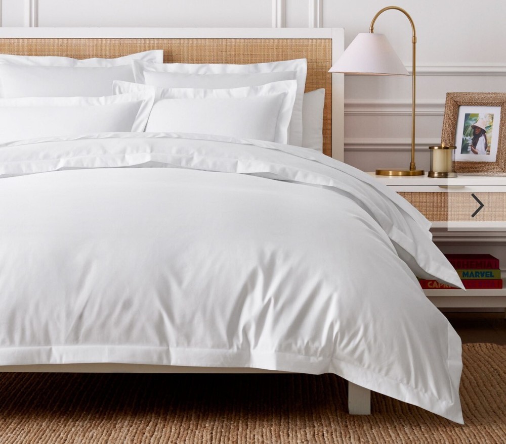 Pottery Barn 1000 THREAD COUNT SATEEN Full/Queen Duvet Cover & 2 Standard Shams ~White New with Tag PB describes as: Our highest thread count to date, the new 1000 Thread Count Cotton bedding is the kind of luxury you never knew you needed. With a generous number of threads per inch, it’s supersoft and silky, and only gets better with time. The fabric is spun of 100% cotton fibers, which are naturally easy to care for, wrinkle resistant and breathable, so you can have sweeter dreams, every night. Material: Made of 100% supima cotton; 1000-thread count. Secure Design: Duvet features a button closure and interior ties to help keep insert (sold separately) in place; sham features an envelope closure. Reversible Design: Duvet and sham reverses to the same. Components: Duvet cover and insert sold separately. Shams sold individually. Certification and Standards: STANDARD 100 by OEKO-TEX® certified. Tested in an independent lab and verified to be safe from over 350 harmful substances. Place of Manufacture: Imported. Machine wash cold; gentle cycle with like colors. Use only non-chlorine bleach if needed. Tumble dry low; remove promptly. Warm iron as needed. Full/Queen Duvet Cover: 88" w x 92" l Standard Sham: 20" w x 26" l Pet & Smoke Free Ships within 1 business days Thank you