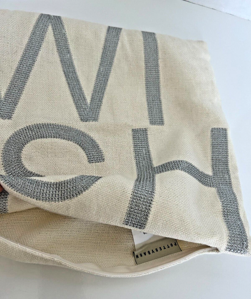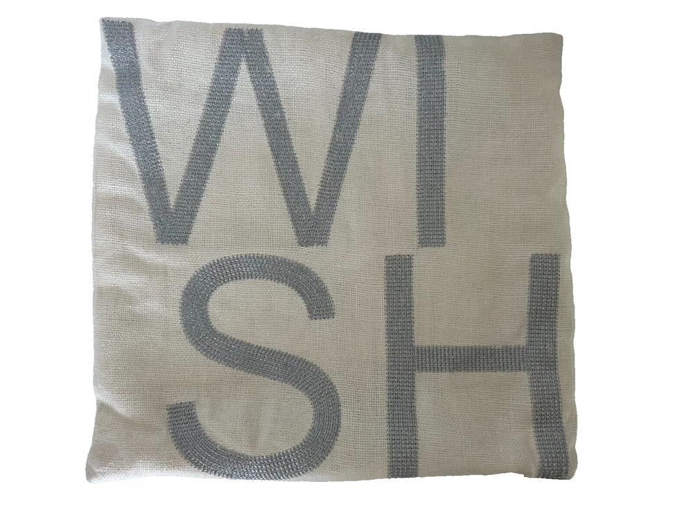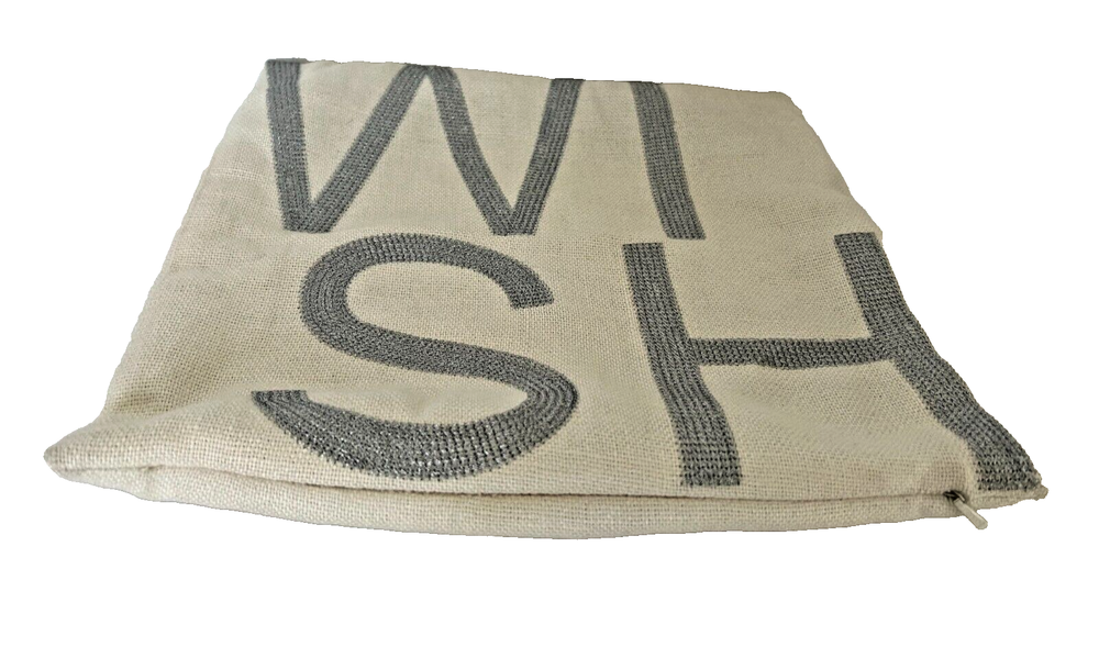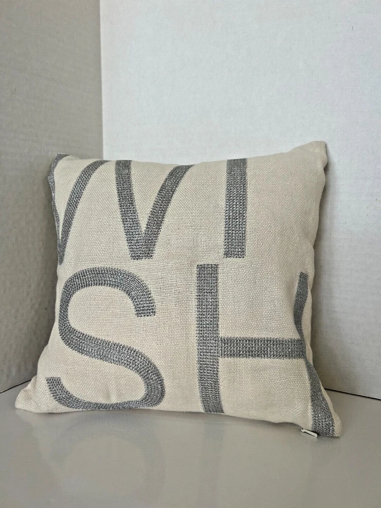 Pottery Barn pillow cover/sham 100% linen with 100% silver metallic stitching WISH. 12" square with zipper closure. Pillow not included.