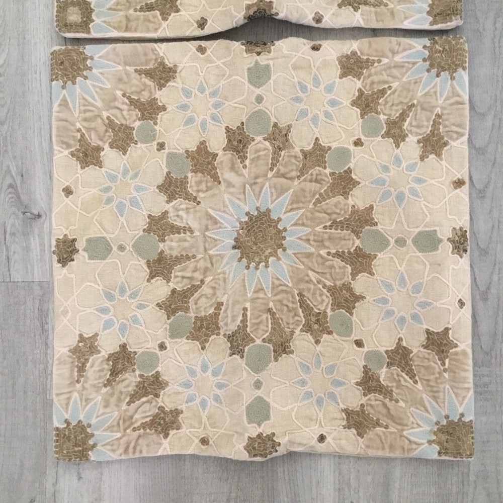 Pottery Barn 18X18 Sequined Cream With Light Blue Pillow Cases Covers Lot of 2 Both in good condition Please let me know if you have any questions O