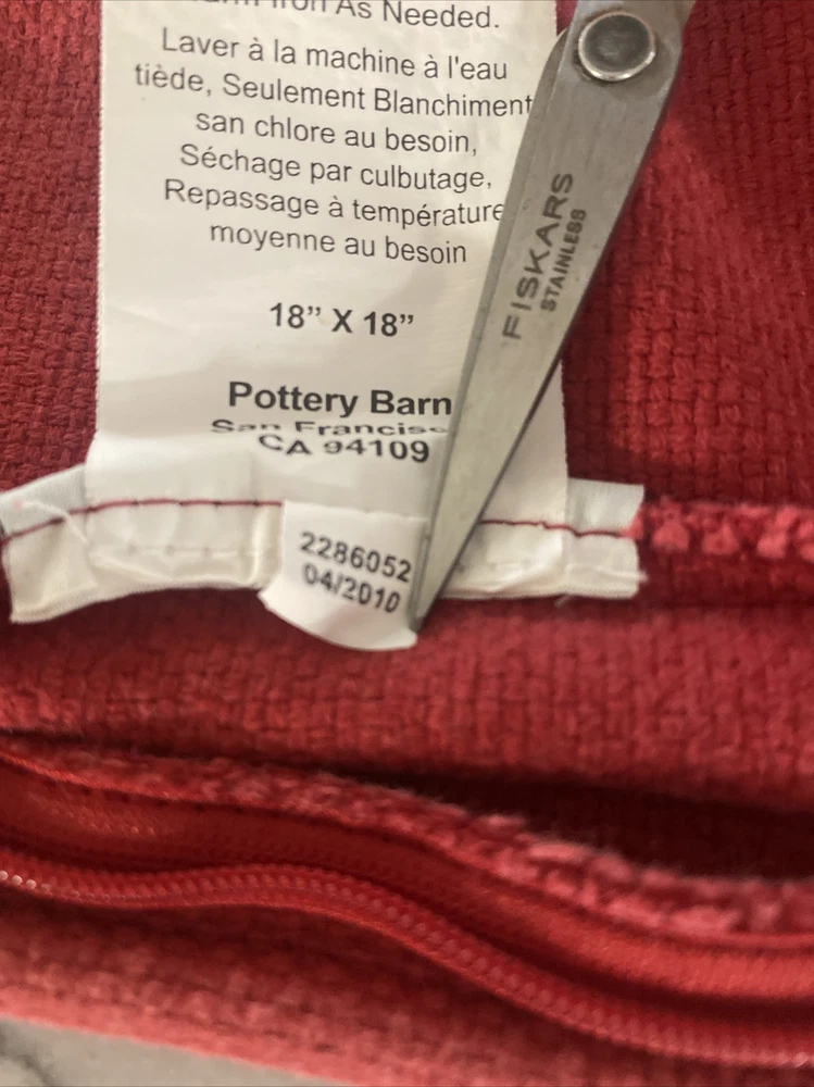 Pottery Barn 18x18 Red Cotton Pillow Cover 2286052 Corded Edge...