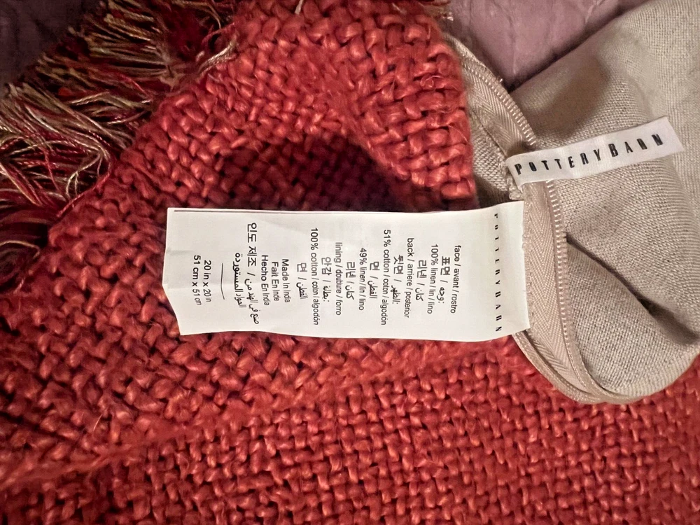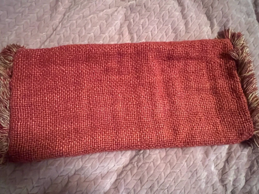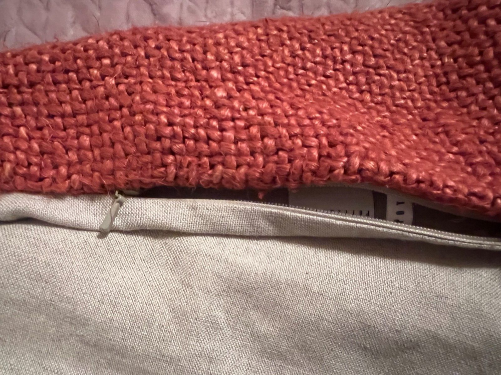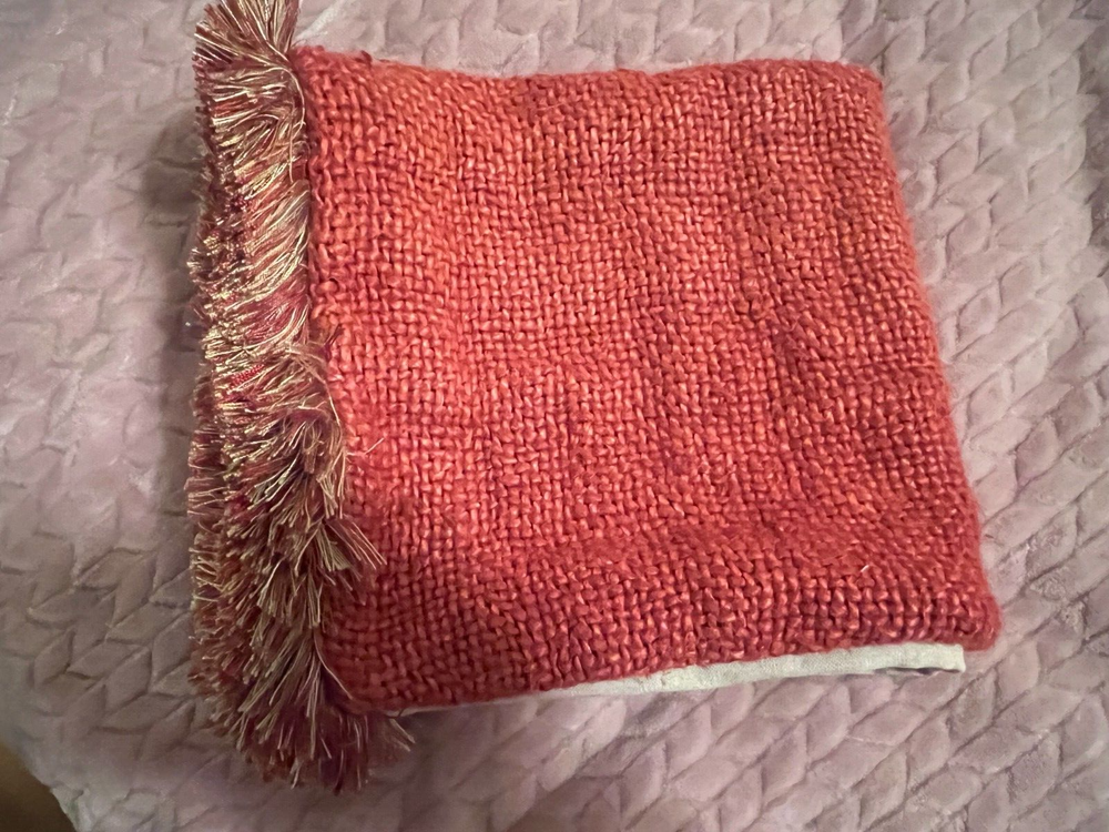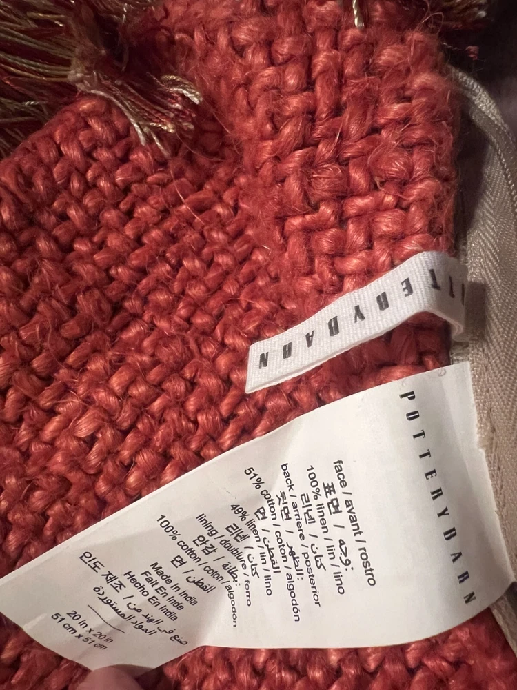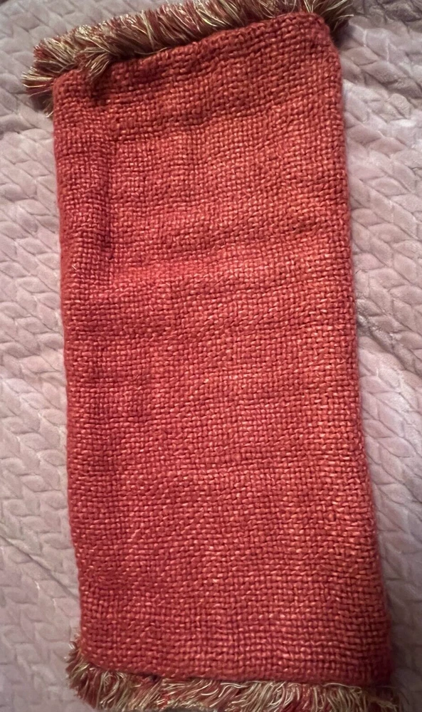 Pottery Barn 20 X 20 Euro Woven Sham Zippered Euro Sham with Fringe / 100% Cotton Brick colored woven on front / Solid tan back Nice Pre-Owned Condition...