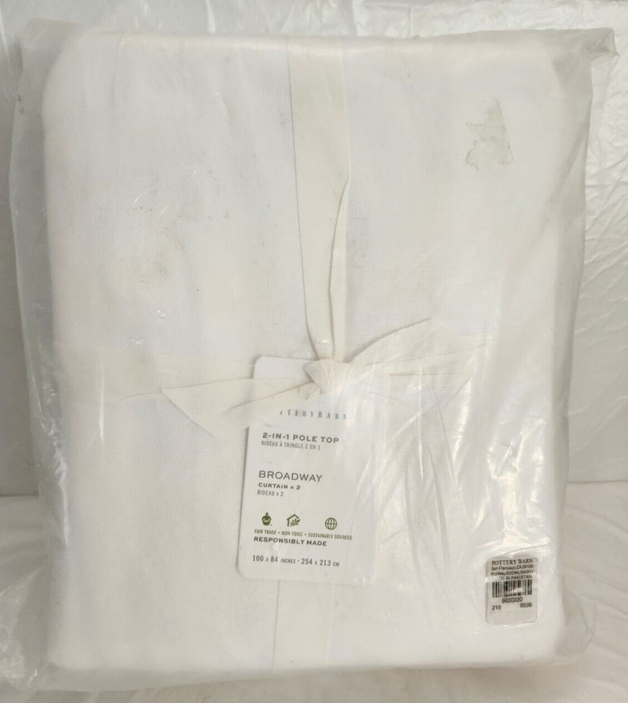 New With Tagged, as Shown on Photos. Add elegance and sophistication to your windows with these Pottery Barn 2-in-1 Pole Top Broadway curtains. Curtains come in a classic white color and are made of high-quality cotton material that is both durable and easy to maintain. The curtains are designed with a solid pattern and are transparent, allowing you to filter out unwanted light while maintaining your privacy. The 2-in-1 pole top design allows for easy installation and convenient operation, while the lined feature ensures that the curtains remain in place and provide a seamless look. These curtains are perfect for any room in your home and are suitable for both teens and adults. Upgrade your window treatments with these stylish and functional curtains from Pottery Barn.