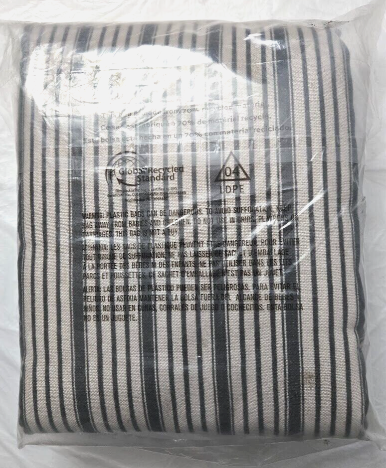 Sold as Show on Photos. Elevate your home decor with the Pottery Barn 2-in-1 Pole Top Tick Stripe Print Curtain. Measuring 50 inches in width and 96 inches in length, this charcoal curtain seamlessly blends style and functionality. Its classic tick stripe print is complemented by the quality craftsmanship of Pottery Barn. Designed to enhance the ambiance of any room. Crafted from a luxurious blend of 55% linen and 45% cotton, this curtain ensures durability while providing a light-filtering effect for comfortable sunlight. The rod pocket heading makes it easy to install and the lined construction offers additional privacy. Suited for teens, adults, and kids, it's a versatile addition to your living space, ensuring both elegance and ease of care with its dry-clean-only instructions.
