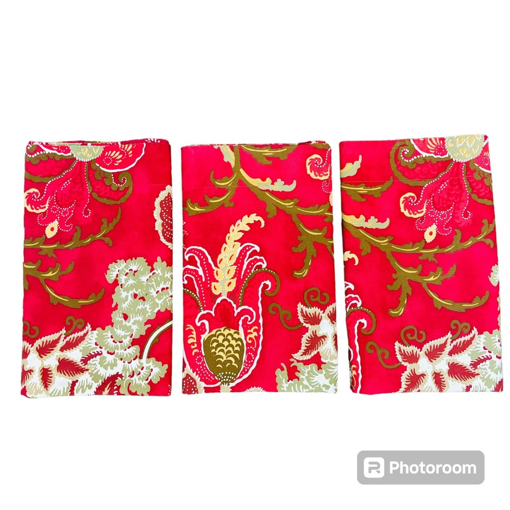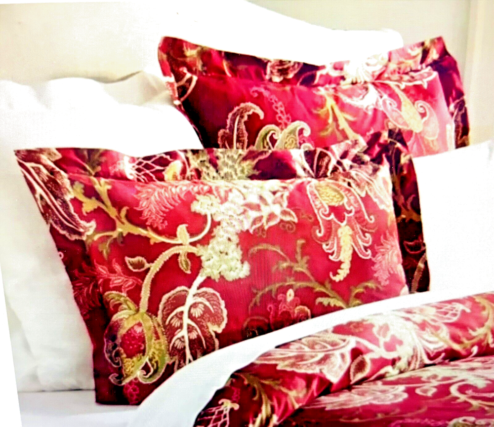 Pottery Barn 3 Pillow Shams Standard Mallory Palampore Organic Cotton 200 Thread inside measurements: 22" x 25" with an additional 2.5" border all around size: standard fabric: 100% organic cotton color: red print style: mallory palampore quantity: 3 shams care: professionally washed & pressed (fragrance free detergent) (V-9)