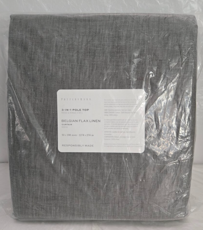 Sold as Show on Photos. The Pottery Barn 3-in-1 Pole Top Belgian Flax Linen 1-Curtain in Dark Forest, solid curtain with a light filtering transparency. Made of high-quality linen, this rod pocket curtain is designed for wall mounting and features a lined interior for added privacy. The curtain measures 50" in width and 108" in length, making it suitable for any room in both teen and adult living spaces. Easy to care for with machine wash instructions, this curtain adds a touch of elegance and sophistication to any home decor.