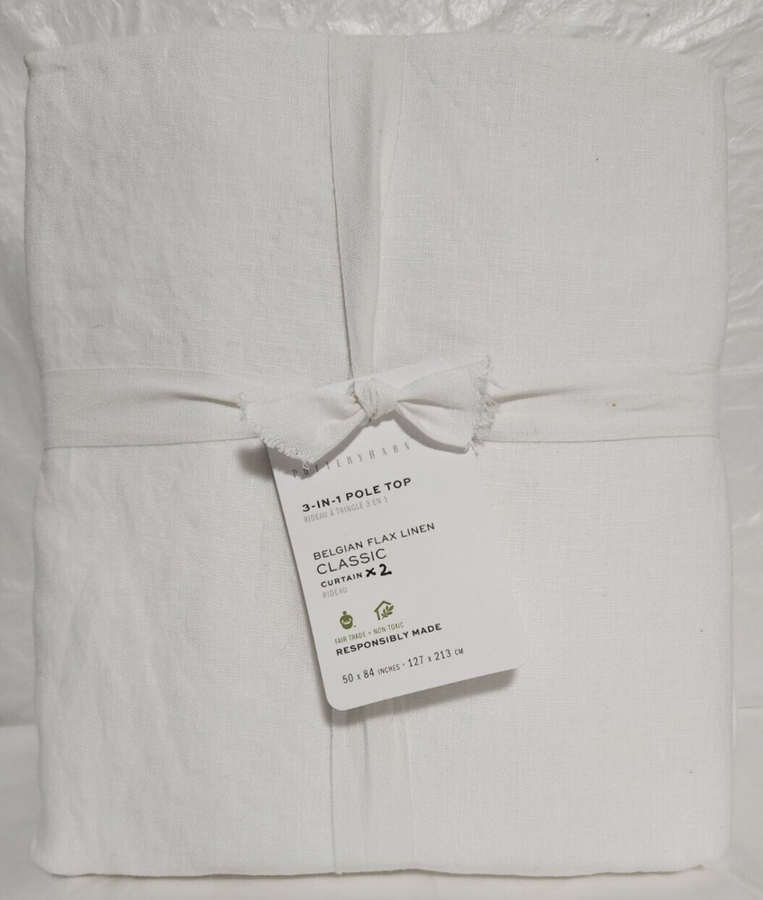 New With Tagged, as Shown on Photos. Add elegance and style to your home décor with these Pottery Barn 3-in-1 Pole Top Classic Belgian Flax Linen Curtains. Featuring a solid pattern and light filtering transparency, these curtains are perfect for any room in your home. The rod pocket curtain heading ensures easy installation and the 50" w and 84" l provide ample coverage for your windows. Crafted from high-quality linen material, these curtains are durable and machine washable for easy care. The white color and classic style make them a perfect fit for teens, adults, and kids alike. Indoors and wall-mounted, these curtains are sure to enhance the look of your living space.