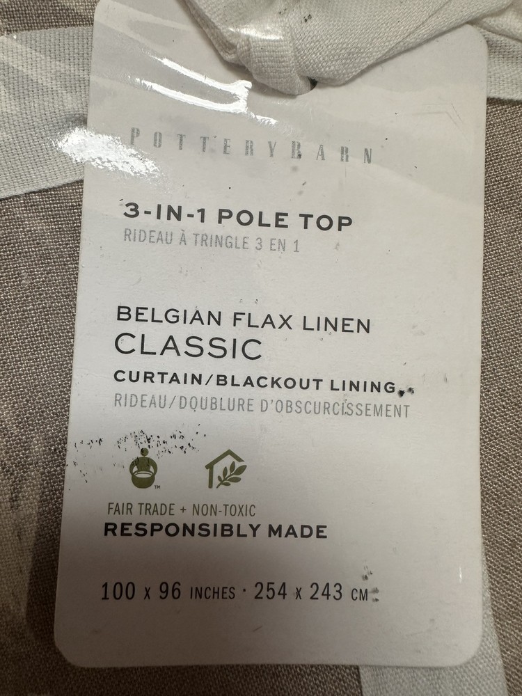 Pottery Barn presents a 3-in-1 Pole Top Curtain featuring blackout lining and made from Belgian Flax Linen. The curtain panels have a rod pocket design and come in a beige color. Each panel measures 100 inches in width and 96 inches in length, providing a stylish and functional window treatment for your home.