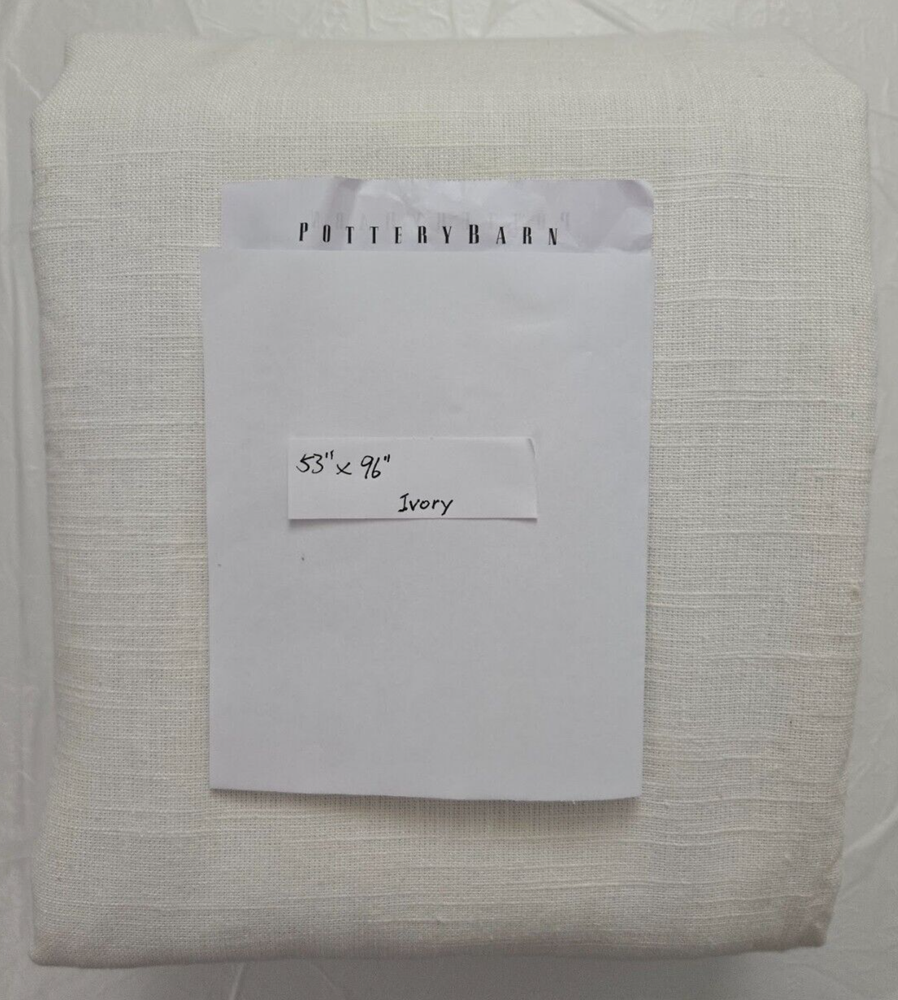 Pottery Barn 3-in-1 Pole Top Custom Emery 1- Curtain Blackout Lining 96" x 53" Ivory Add elegance and sophistication to your home décor with this Pottery Barn 3in1 Pole Top Custom Emery curtain. Featuring a solid pattern and blackout transparency, this curtain is perfect for any room. The rod pocket curtain heading and wall mounted design make it easy to install. Made of 73% linen and 27% cotton material ensure durability and longevity. Measuring 119 inches in length and 48 inches in width, this curtain is designed for teens, adults, and kids. The white color and modern style make it a perfect fit for any room. Dry-clean only and lined with blackout lining, this curtain provides both privacy and insulation. Upgrade your home décor with this beautiful Pottery Barn curtain.