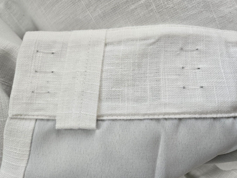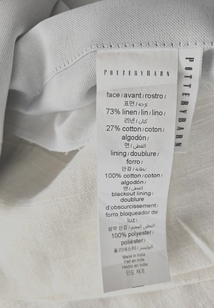 New Without Tagged, Sold as Show on Photos. Add a touch of elegance to any room with this Pottery Barn 3-in-1 Pole Top Emery Curtain. The curtain measures 100" W x 84" L, features a solid white color with a blackout lining, making it perfect for privacy & light control. The rod pocket heading allows for easy installation on any wall. Made of 73% linen 27% cotton material gives it a modern look that will complement any decor style. Care instructions recommend dry-cleaning to maintain the quality of the curtain. Ideal for any room in the house, this curtain is suitable for adults, teens, unisex baby & toddler, and kids. With its medium weight and indoor features, it is perfect for those looking for a fashionable and functional window treatment.