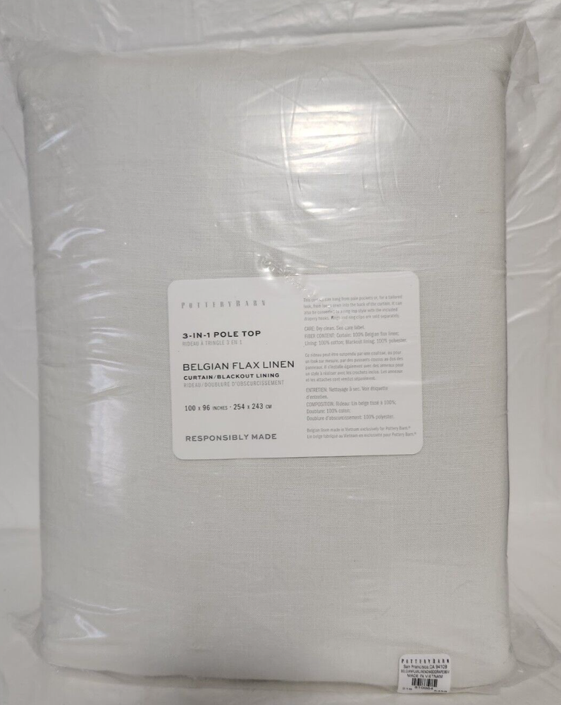 New With Tagged, as Shown on Photos. Add elegance and sophistication to your home décor with this Pottery Barn 3-in-1 Pole Top Belgian Flax Linen curtain. Featuring a classic ivory color and solid pattern, this curtain is perfect for any room in your house. The blackout lining ensures complete privacy, while the 3-in-1 pole top design allows for easy installation and versatile styling. Crafted from high-quality linen material, this curtain is durable and long-lasting. Measuring 100 inches in width and 96 inches in length, it is designed to fit most window sizes. With care instructions for this curtain is easy to maintain and will continue to add beauty to your home for years to come.