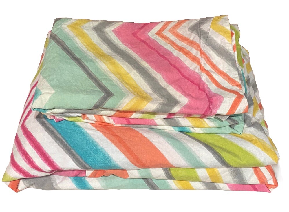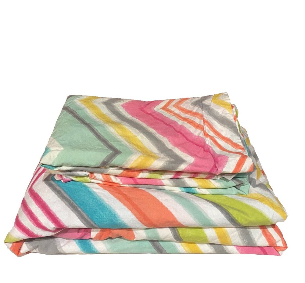 Wonderful Preowned condition. Clean!! Full/Queen. Cotton. 85x86. Multi color chevron pattern Includes: Duvet cover 2 pillow shams - standard Preowned Comes as pictured...