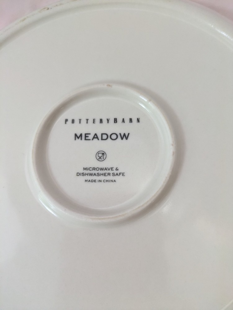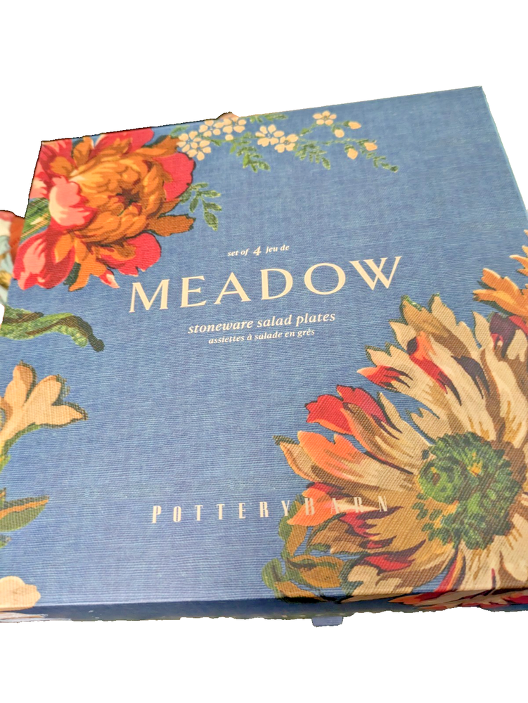 These are mint in box, set of 4 8 1/2" salad plates in the Meadow pattern. I believe these have been discontinues and are not longer available. From Pottery Barn