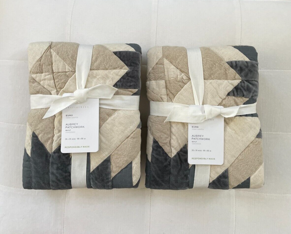 Pottery Barn Aubrey Velvet Patchwork Euro Shams ~Set of Two~ New with tags Brand new in manufacturers original packaging PB describes: Steeped in the American patchwork tradition, our sham's vintage-inspired pineapple pattern is a welcoming symbol of hospitality. Crafted from a blend of fabrics, it layers beautifully with everything from lush velvet to textural linen, offering year-round comfort and endless styling options. Made from 100% cotton. Reverses to solid. Shams have an envelope closure. Shams and inserts are sold separately. Ethically handcrafted to the Nest Standards for homes and small workshops. By choosing our cotton products, you’re supporting our investment in Better Cotton’s mission. This product is sourced via mass balance and therefore may not contain Better Cotton. Imported. Machine wash in warm water; gentle cycle. Only non-chlorine bleach when needed. Tumble dry on low heat; remove promptly. Warm iron as needed. Euro Sham 26" Pet & Smoke Free Ships within 1 business day Thank you!