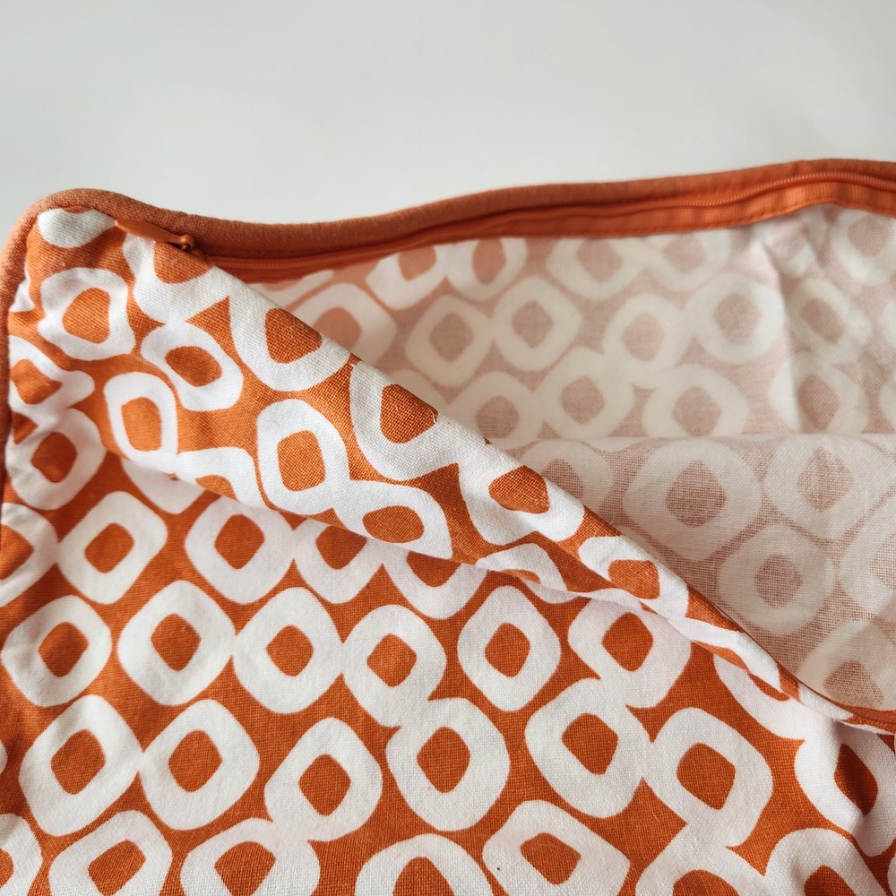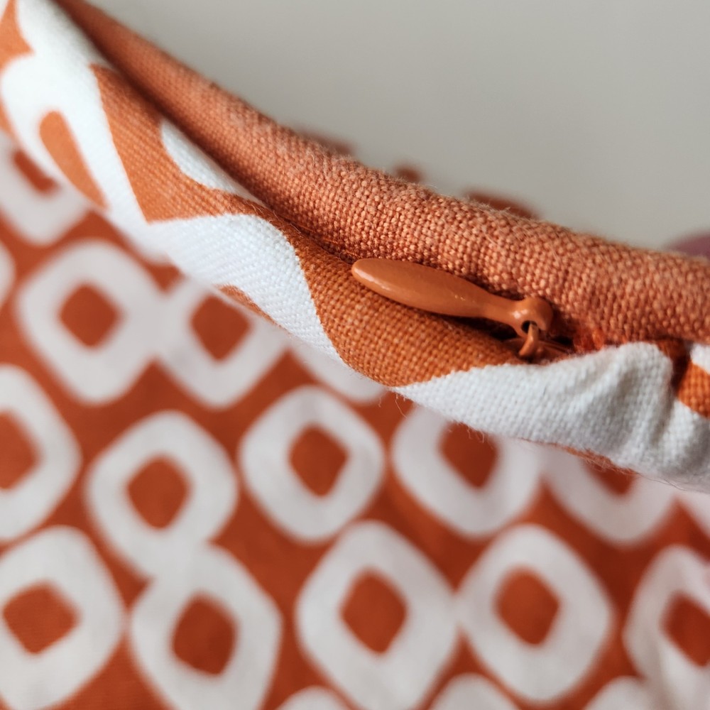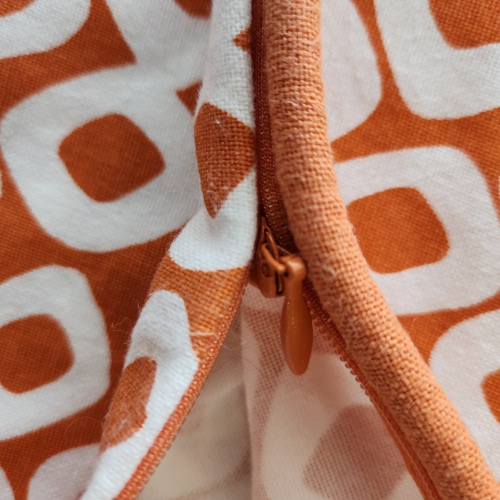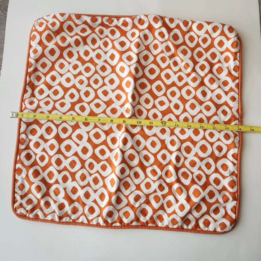 Pottery Barn Abstract Circles Rust Orange 18 inch Square Pillow Cover Features hidden zipper. Cover is 100% cotton made in India. Excellent pre owned condition. No stains, odors, holes, repairs or damage.