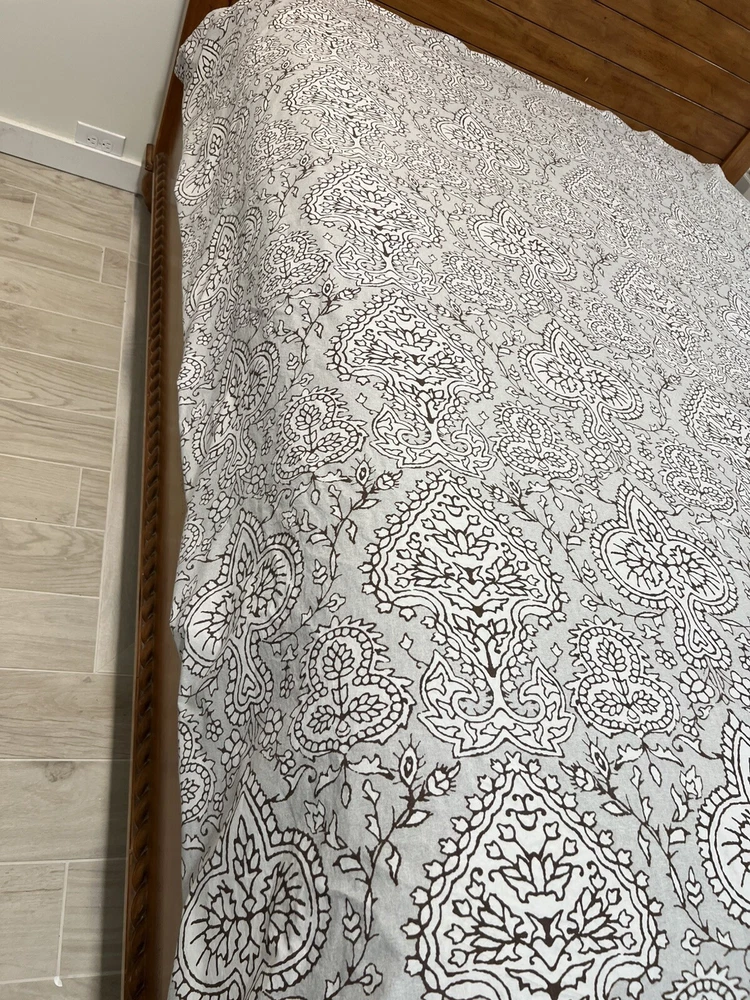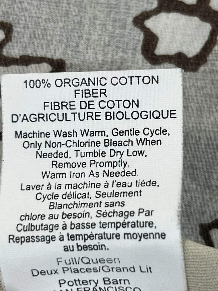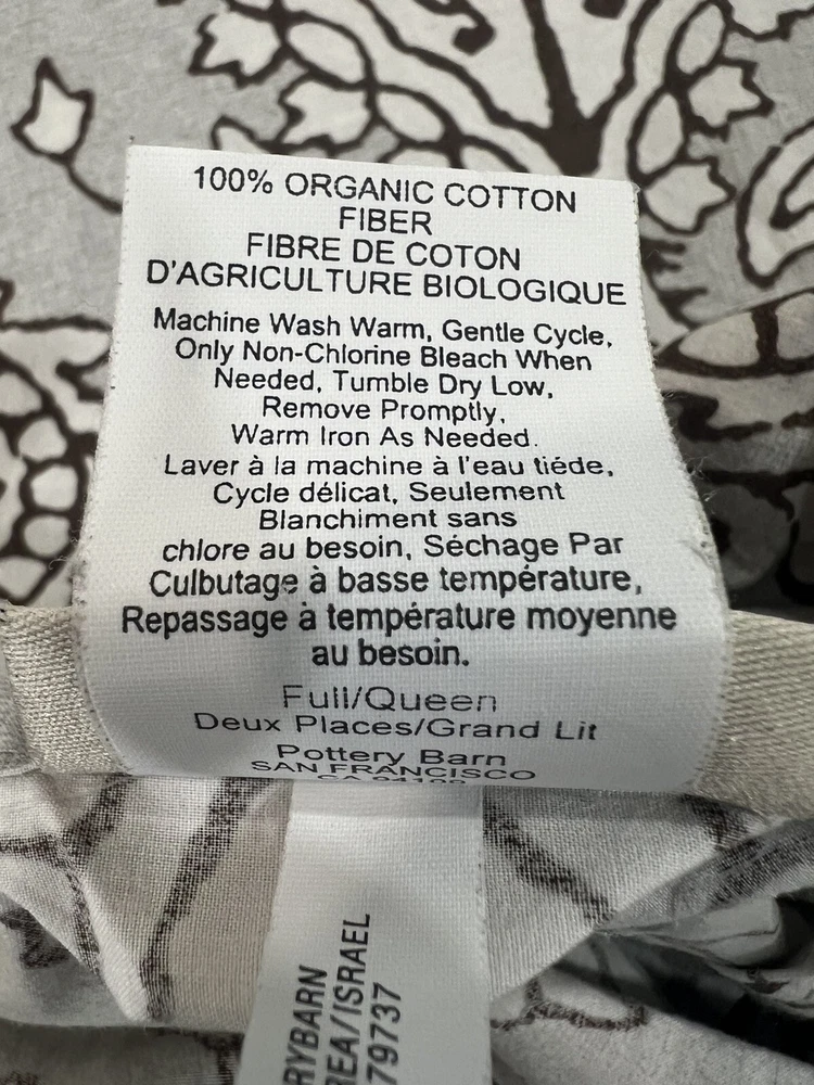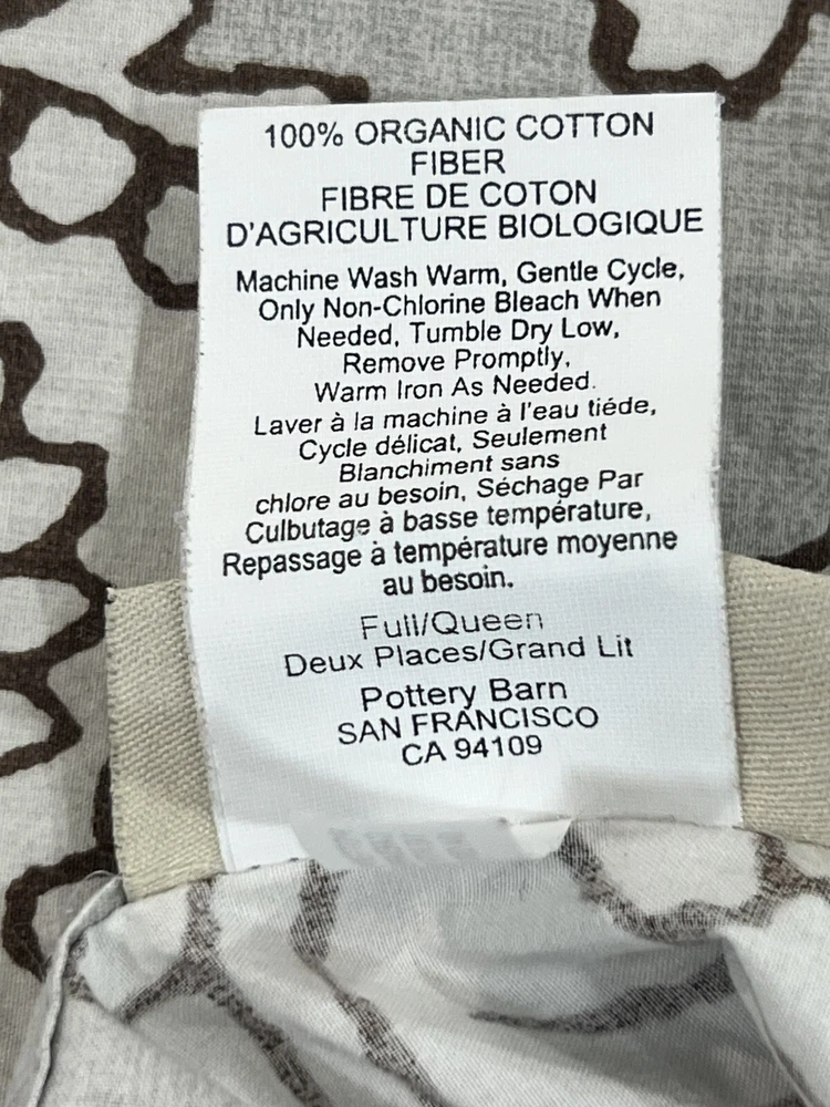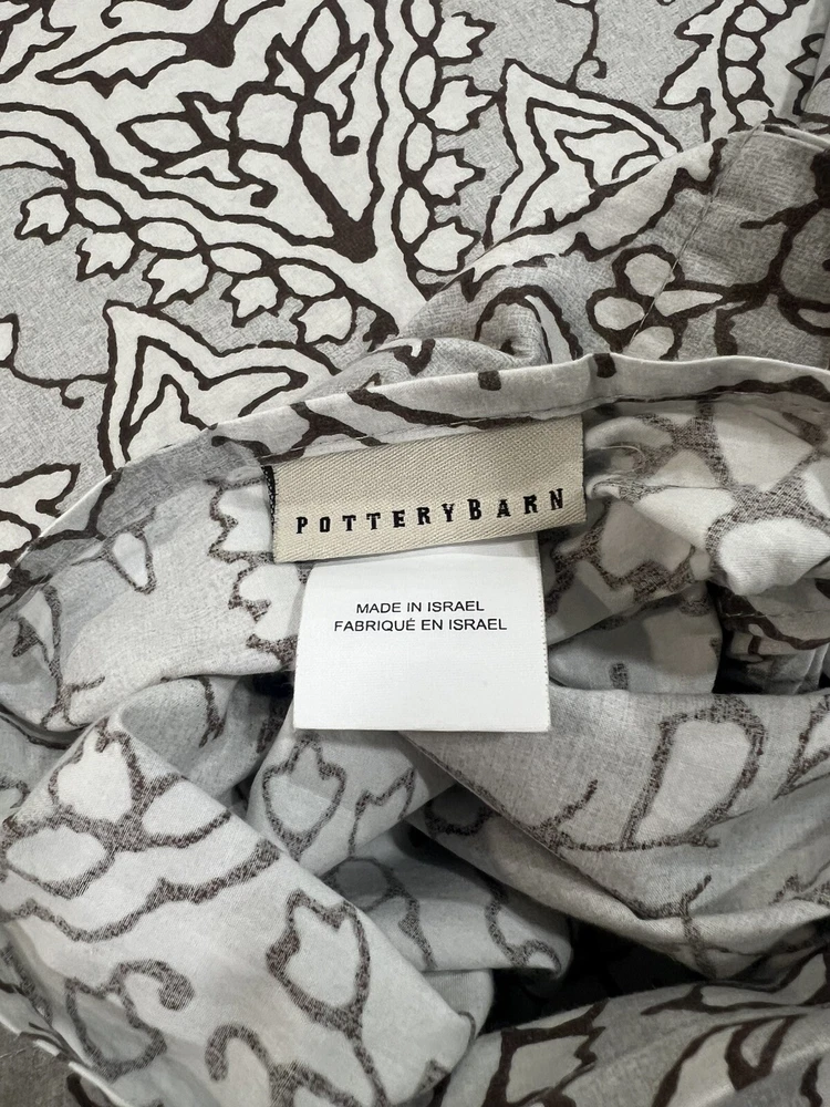 Experience the comfort and luxury of the Pottery Barn Adelaide Full/Queen Duvet Cover, a perfect blend of style and organic comfort for your bedroom. This modern duvet cover features a mandala floral print in a soothing brown and ivory palette, bringing an elegant touch to your decor. Crafted from 100% organic cotton, it provides a soft and sustainable sleeping experience. Designed with practicality in mind, this duvet cover is machine washable, ensuring easy care and long-lasting use. Its rectangular shape and button closure offer a sleek, tailored look. The duvet cover is made in Israel and fits full/queen size beds. It's a simple yet chic way to enhance your bedroom's style while enjoying the quality and comfort synonymous with Pottery Barn.
