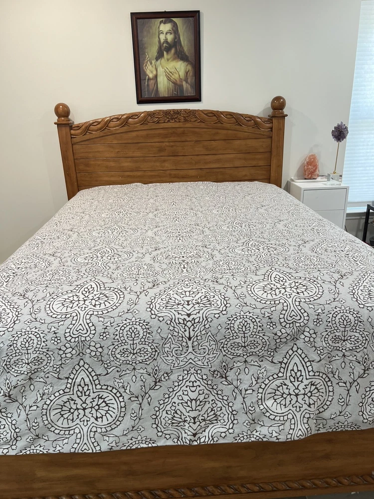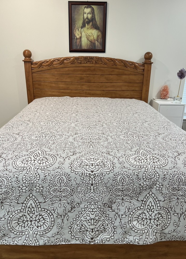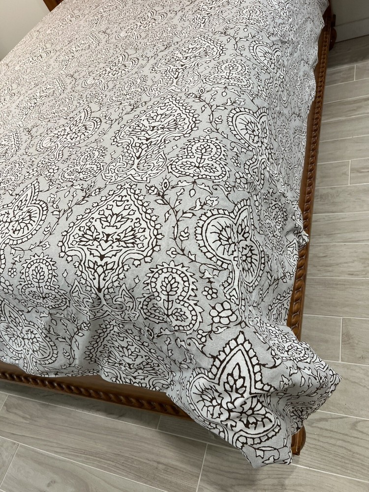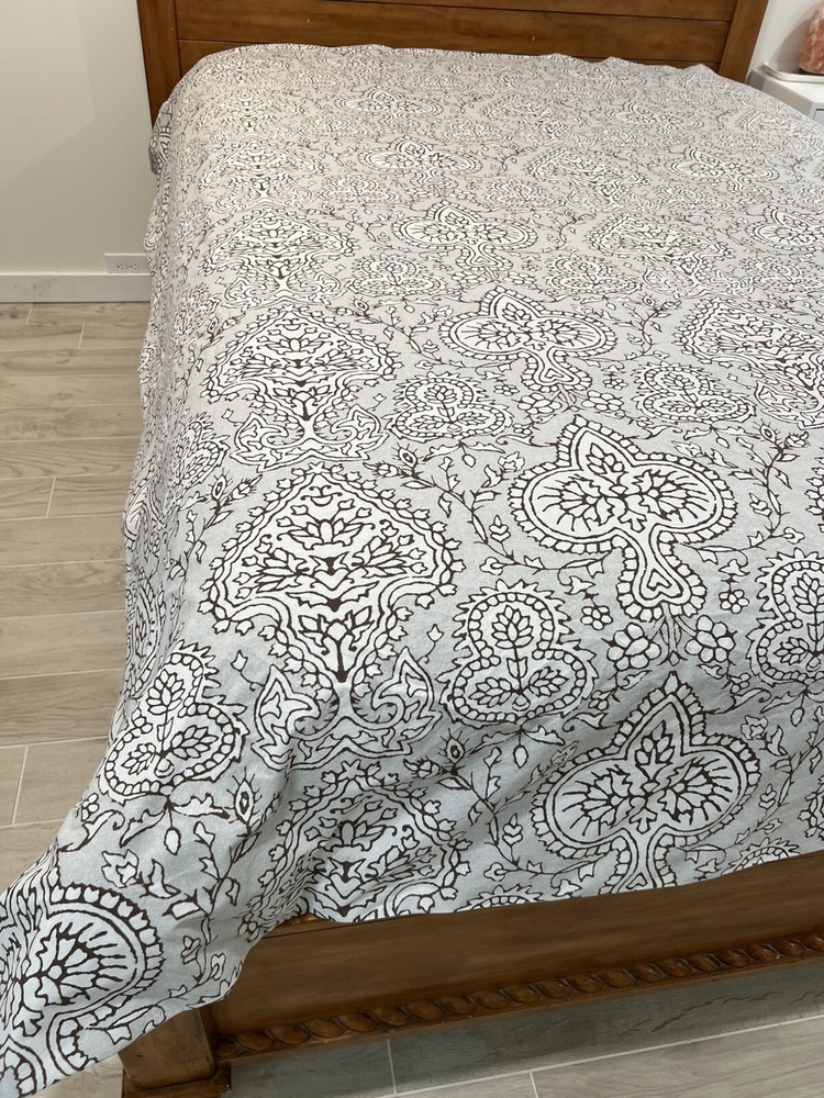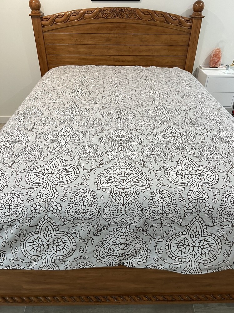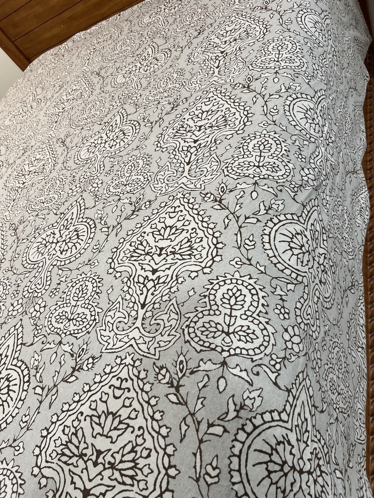Experience the comfort and luxury of the Pottery Barn Adelaide Full/Queen Duvet Cover, a perfect blend of style and organic comfort for your bedroom. This modern duvet cover features a mandala floral print in a soothing brown and ivory palette, bringing an elegant touch to your decor. Crafted from 100% organic cotton, it provides a soft and sustainable sleeping experience. Designed with practicality in mind, this duvet cover is machine washable, ensuring easy care and long-lasting use. Its rectangular shape and button closure offer a sleek, tailored look. The duvet cover is made in Israel and fits full/queen size beds. It's a simple yet chic way to enhance your bedroom's style while enjoying the quality and comfort synonymous with Pottery Barn.
