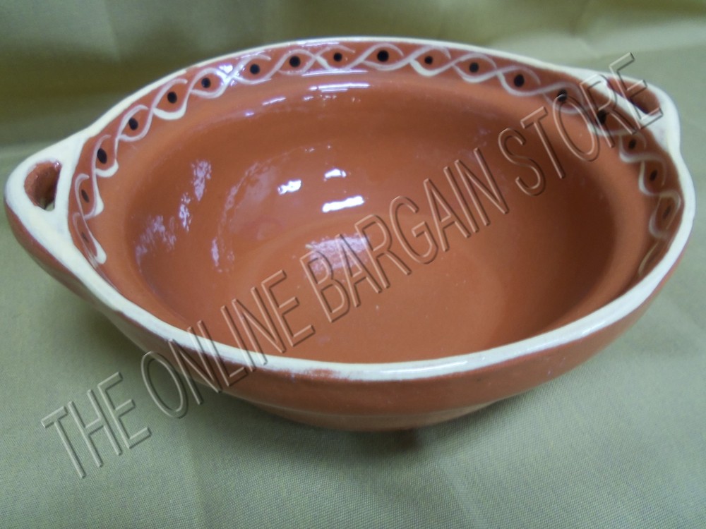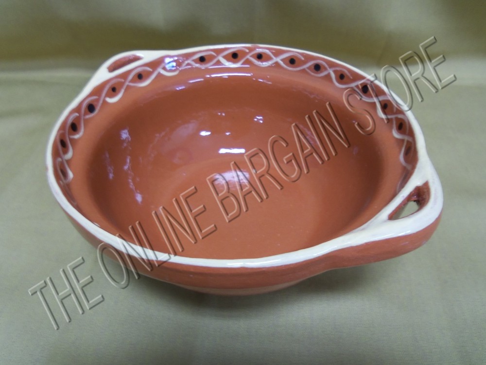 Pottery Barn Chip Medium Bowl Platter NEW! ***Some have minor defects from the glazing process and minor nicks... see photos*** Host a Mexican-style party with an authentic presentation. Our terra-cotta condiment tray is modeled after Mexican originals and made by hand in Portugal. Approximate Measurements: Overall: 10 " handle to handle x 8.5" across x 3.5" tall Bowl: 8.5" diameter x 3.5" tall Inside diameter: 8" Traditional floral pattern is hand painted. Finished with a clear, protective glaze. Crafted in Portugal. Terra-cotta pieces are dishwasher and microwave-safe. See matching pieces in my store....