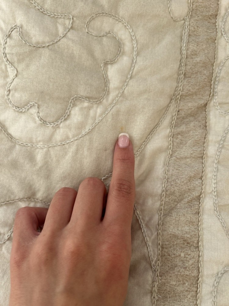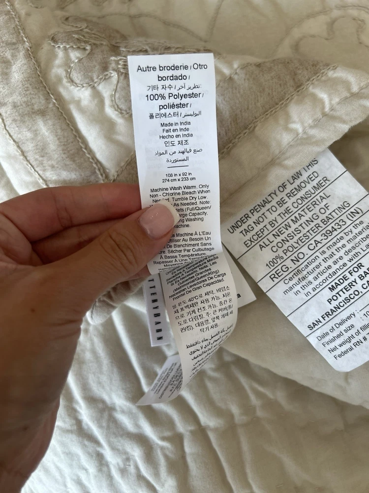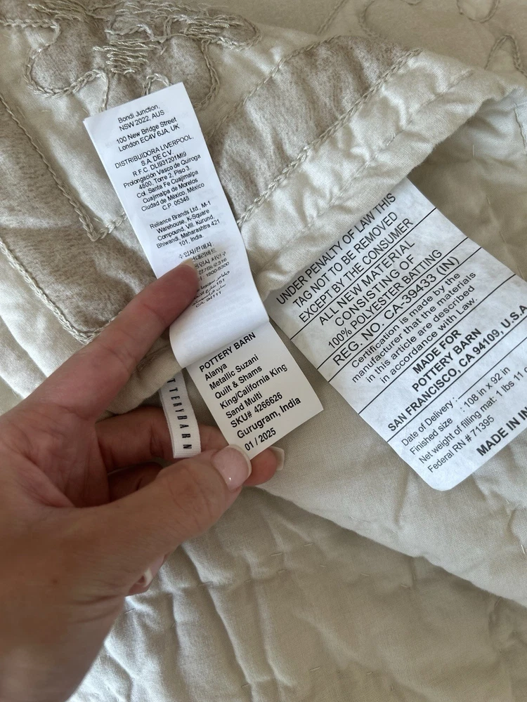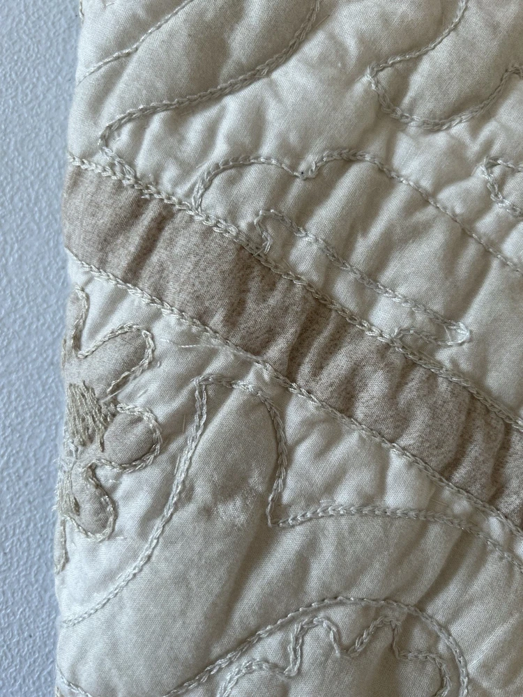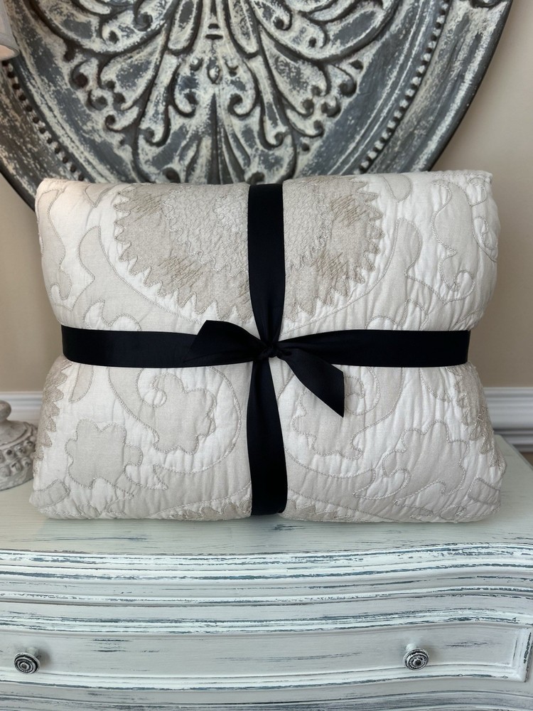 Pottery Barn Alanya Suzani Embroidered KING/CAL. KING Quilt PRE-OWNED READ Pre-owned, no tears/holes - There are some spots on the quilt as well as loose threads in the embroidery throughout the quilt. Please reference all photos - Size king/cal. king