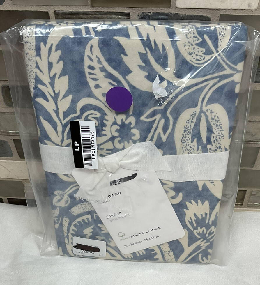Pottery Barn Alessandra Organic Percale Standard Sham Blue NWT. Machine Wash Purchased at an Outlet Store