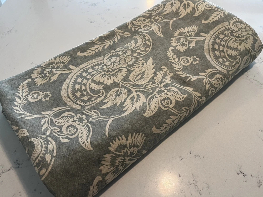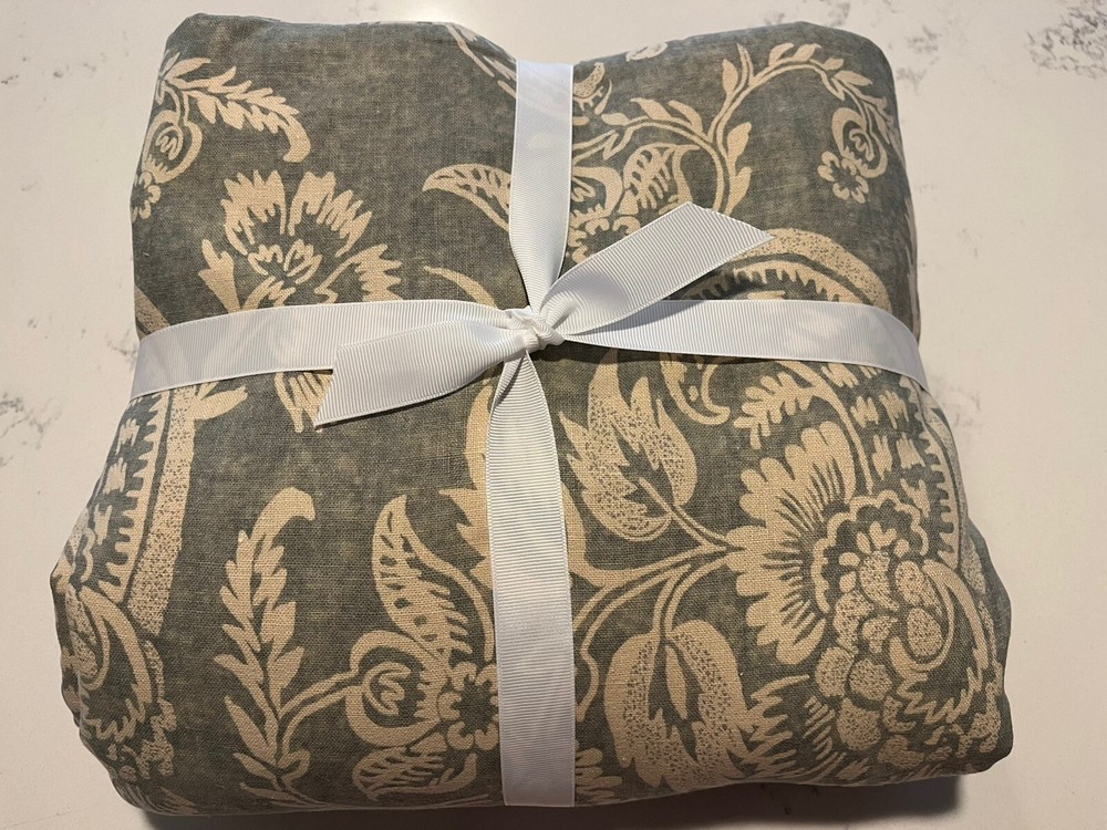 ***Pottery Barn*** Alessandra Scroll Duvet Cover Full/Queen. 100% Organic Cotton. Button closure. Corner ties to hold insert in place. Reverses to same pattern. Pre-owned condition. No rips, stains, or noticeable wear and tear. No longer available at Pottery Barn. Pet and smoke free environment. Please email any questions. Thanks for shopping by!