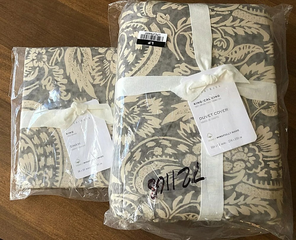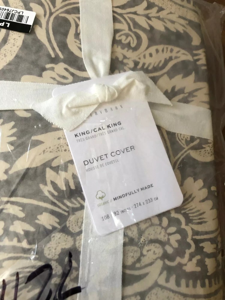 This was described as follows by Pottery Barn: A 250-year-old hand-blocked textile from Provence was the model for our Alessandra floral. Woven of 100% Organic cotton; organic cotton is grown without the use of toxic and persistent pesticides and synthetic fertilizers. Duvet and sham reverse to self. Duvet cover has a hidden button closure and interior ties to keep the duvet in place; sham features an envelope closure. 200-thread count. Duvet cover and insert sold separately. DIMENSIONS Duvet Cover King/Cal King: 108" l x 92" w Sham King (1): 20" h x 36" w Standard (1): 20" h x 25" w CARE AND MAINTENANCE Machine wash in warm water; gentle cycle. Use only non-chlorine bleach when needed. Tumble dry on low heat; remove promptly. Warm iron as needed. This is being stored in my pet-free and smoke-free clean home. Check out my other items for more great deals! Other Information Thank you for looking at my merchandise. I really appreciate your browsing and shopping. Mostly the buying, but it's all appreciated nonetheless. Ebay is my preferred method of payment. Who am I kidding? I prefer cash. But since that isn't an option, we will discuss Ebay. Payments must clear before the item(s) will be shipped. I do not ship to alternate addresses (be a grownup and update your address, already!), nor do I ship outside the contiguous 48 states or to APOs. If you don't know what an APO is, then it doesn't apply to you. No need to lose any sleep over it. Or you can just google it and kill another two minutes of the day. Then google "cats on Roombas" and there goes the rest of your day. You're welcome. Ebay collects tax from buyers. I do not personally receive the tax – Ebay sends it to the state comptroller. Otherwise, the state comptroller will get very cranky. I am happy to leave positive feedback for those who kindly take the time to do the same for me. Yes, it's a pain to take the time to leave feedback for me. But it gives me warm fuzzies. I LOVE warm fuzzies. And remember... Santa takes notes all year long. You don't want to get on his naughty list. Well, not for that reason anyway. ;) Color is subjective. The digital pictures I display are sometimes less than optimal. Well, not "sometimes". Let's be honest and say "almost always". I am not a professional photographer and I do not have a photo studio. I don't have a pet monkey either. All things I regret. Also, I cannot be held responsible for the differences in individual monitor settings. (You know you love to set that fluorescent pink filter on high! You go, girl!) Additionally, different lighting may affect the color perception of an item, so please be familiar with the items you are purchasing. It is possible that not all things in the pictures are included in the auction. For example, if, for some reason, my Aunt Bertha did a photo bomb when I was taking a picture of an item, you CANNOT BUY HER! Well, probably not. Make me an offer. Full disclosure: She passes gas. A lot. But I digress. The point is: Please read the description carefully and ask questions if you are unsure about what is and is not included. All items come from a pet-free, smoke-free, very clean home. No seriously. I have 19 containers of Clorox Wipes and my spices are alphabetized (with front-facing labels, of course! Duh! I'm not an animal.) That being said, some items that I sell are customer return items and it is impossible to tell if it was ever in a home with, say, stuffed squirrels everywhere. As much as I would love to have you as a customer, if you have strong aversions to scents and/or animal fur, perhaps it would be best for you to buy directly from the manufacturer. Or simply be prepared to launder the item (when applicable) prior to use. Or breathe less. I am in no way affiliated with (nor is this auction condoned by) any of the companies whose products I am selling (Neiman-Marcus, Williams-Sonoma Home, Restoration Hardware, Pottery Barn, Pottery Barn Kids, Pottery Barn Teen, West Elm, CB2, Crate and Barrel, etc.). My children also don't claim to know me when we are in public.