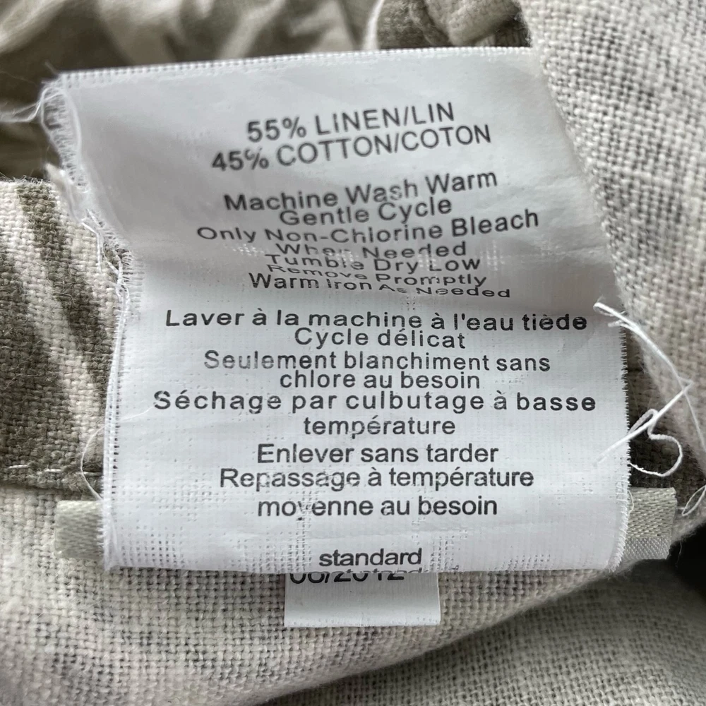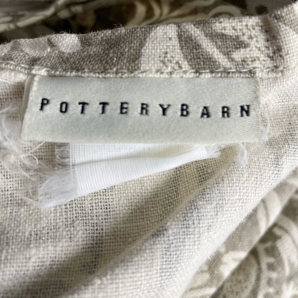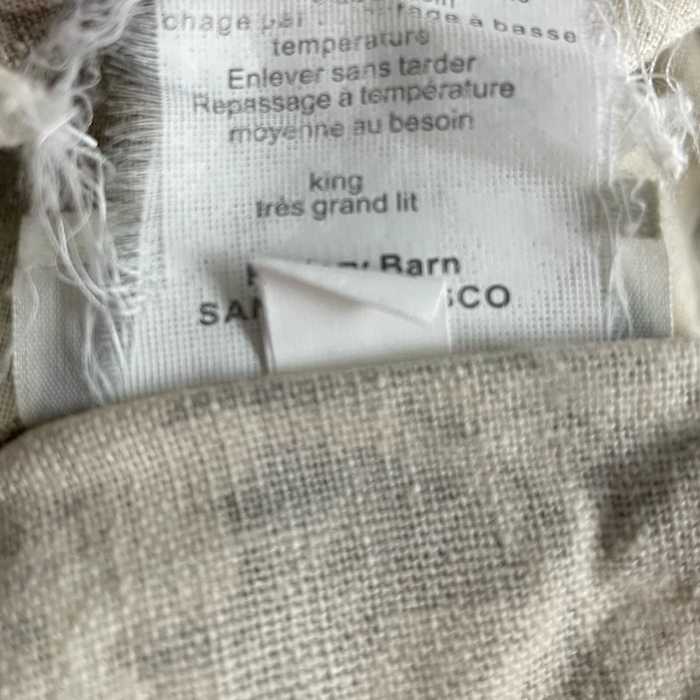 Pottery Barn Alessandra Scroll Linen King Duvet Cover and 1 Standard Sham Gray Ivory 88" long x 105" wide Condition: This is a preowned Pottery Barn linen blend duvet cover. It is in the pattern Alessandra Scroll from 2012. It is in the color grey with cream patterning. It is nice neutral taupe or greige color. It is 55% linen and 45% cotton. It has a button closure and corner ties. It has a pleated detailing on the front. It is a King size duvet cover. This set also includes one single standard pillow sham in the same pattern and color. The sham has a 0.5" flange trim edge. The duvet cover measures 105" wide x 88" long. The standard sham measures 25.5" x 19". The combined weight is 7 lb 4 oz. It is in very good condition. It has no stains and only minimal signs of wear. It has all the buttons for closure but the edge of the duvet cover has several worn spots and some holes. There are no other holes or damage other than along the button edge. Please see the photos for specifics on the condition of this gorgeous linen duvet cover by Pottery Barn. Measurements: One (1) King Duvet Cover: 105" wide x 88" long One (1) Standard Sham: 25.5" x 19" Combined weight is 7 lb 4 oz ***All measurements are approximate*** International Buyers - Please Note: Import duties, taxes, and charges are not included in the item price or shipping cost. These charges are the buyer’s responsibility. Please check with your country's customs office to determine what these additional costs will be prior to bidding or buying.