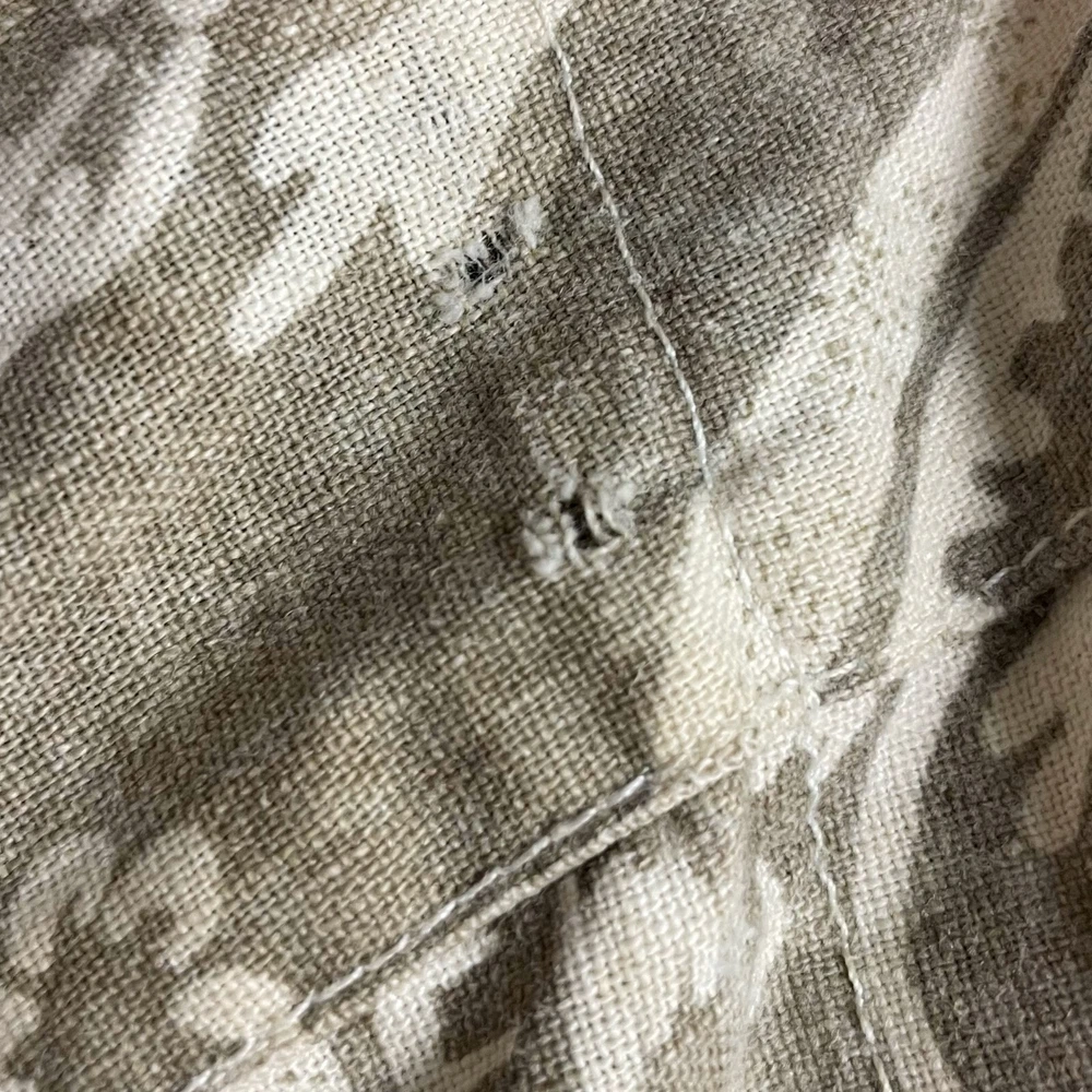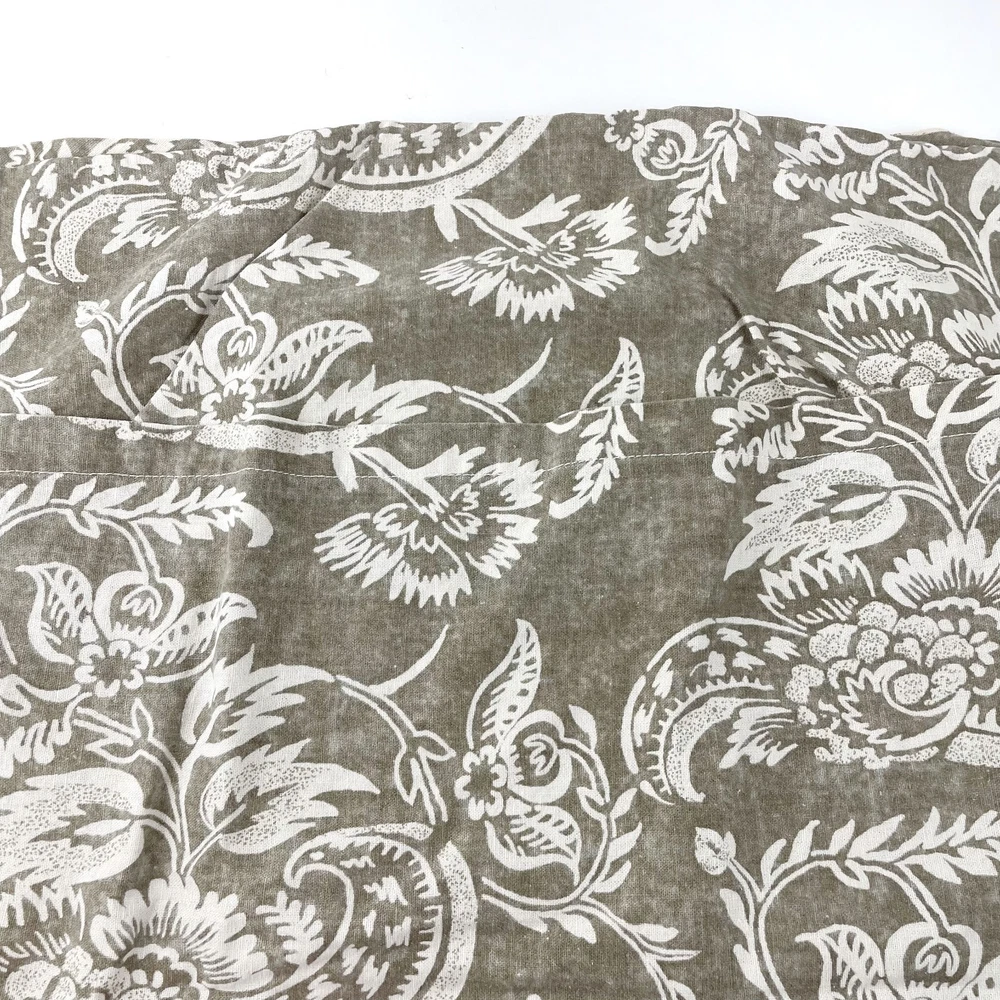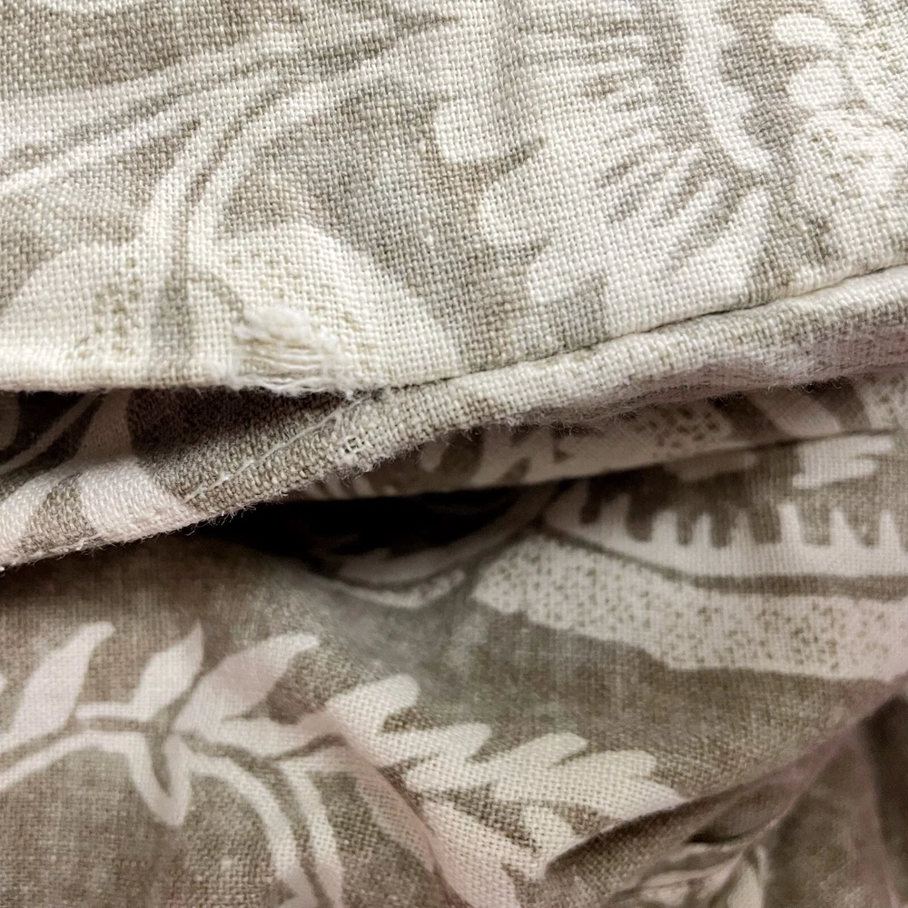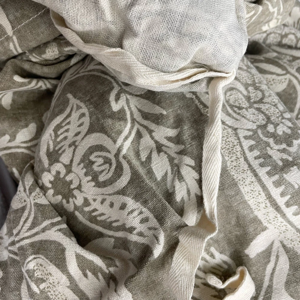 Pottery Barn Alessandra Scroll Linen King Duvet Cover and 1 Standard Sham Gray Ivory 88" long x 105" wide Condition: This is a preowned Pottery Barn linen blend duvet cover. It is in the pattern Alessandra Scroll from 2012. It is in the color grey with cream patterning. It is nice neutral taupe or greige color. It is 55% linen and 45% cotton. It has a button closure and corner ties. It has a pleated detailing on the front. It is a King size duvet cover. This set also includes one single standard pillow sham in the same pattern and color. The sham has a 0.5" flange trim edge. The duvet cover measures 105" wide x 88" long. The standard sham measures 25.5" x 19". The combined weight is 7 lb 4 oz. It is in very good condition. It has no stains and only minimal signs of wear. It has all the buttons for closure but the edge of the duvet cover has several worn spots and some holes. There are no other holes or damage other than along the button edge. Please see the photos for specifics on the condition of this gorgeous linen duvet cover by Pottery Barn. Measurements: One (1) King Duvet Cover: 105" wide x 88" long One (1) Standard Sham: 25.5" x 19" Combined weight is 7 lb 4 oz ***All measurements are approximate*** International Buyers - Please Note: Import duties, taxes, and charges are not included in the item price or shipping cost. These charges are the buyer’s responsibility. Please check with your country's customs office to determine what these additional costs will be prior to bidding or buying.