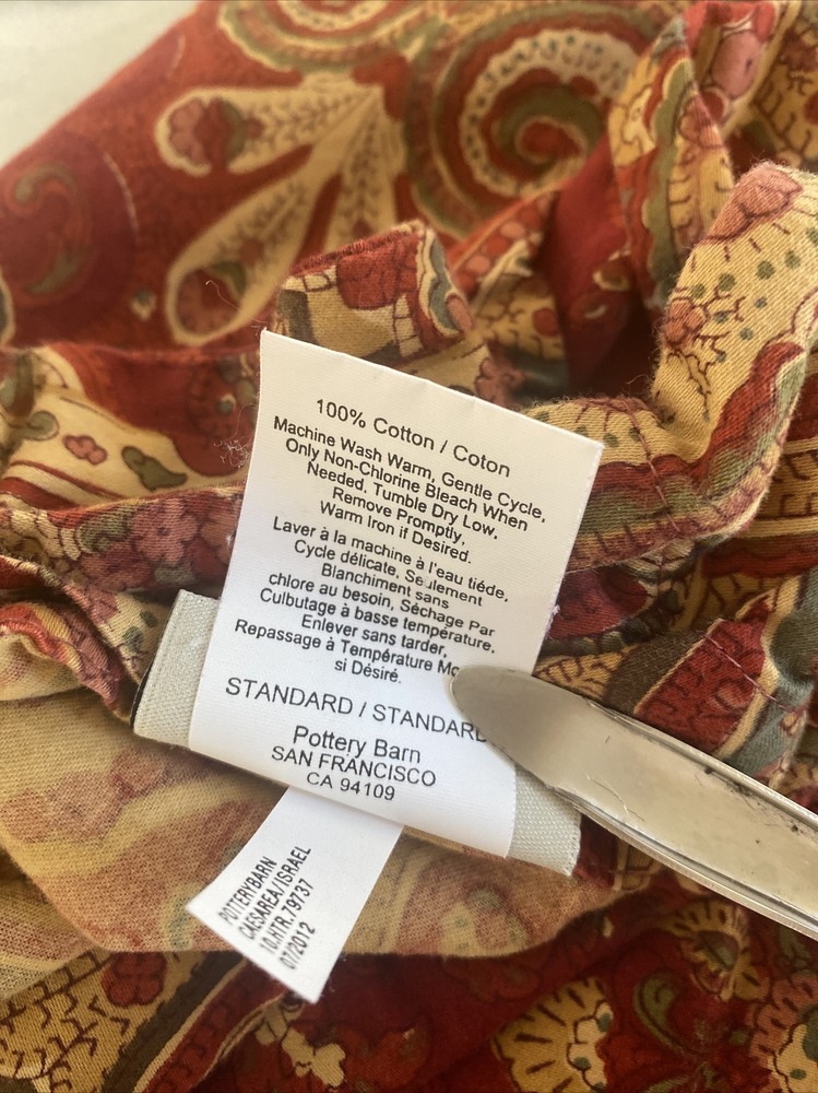 Pottery Barn Alice Paisley Standard Pillow Shams Red Gold Green Multiple Available...