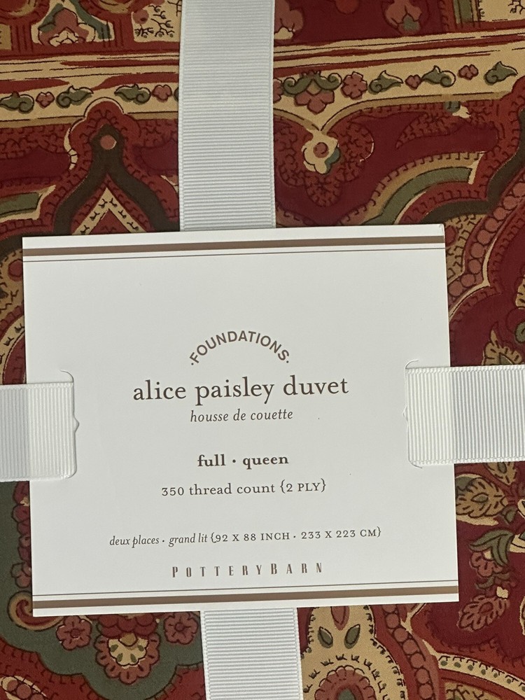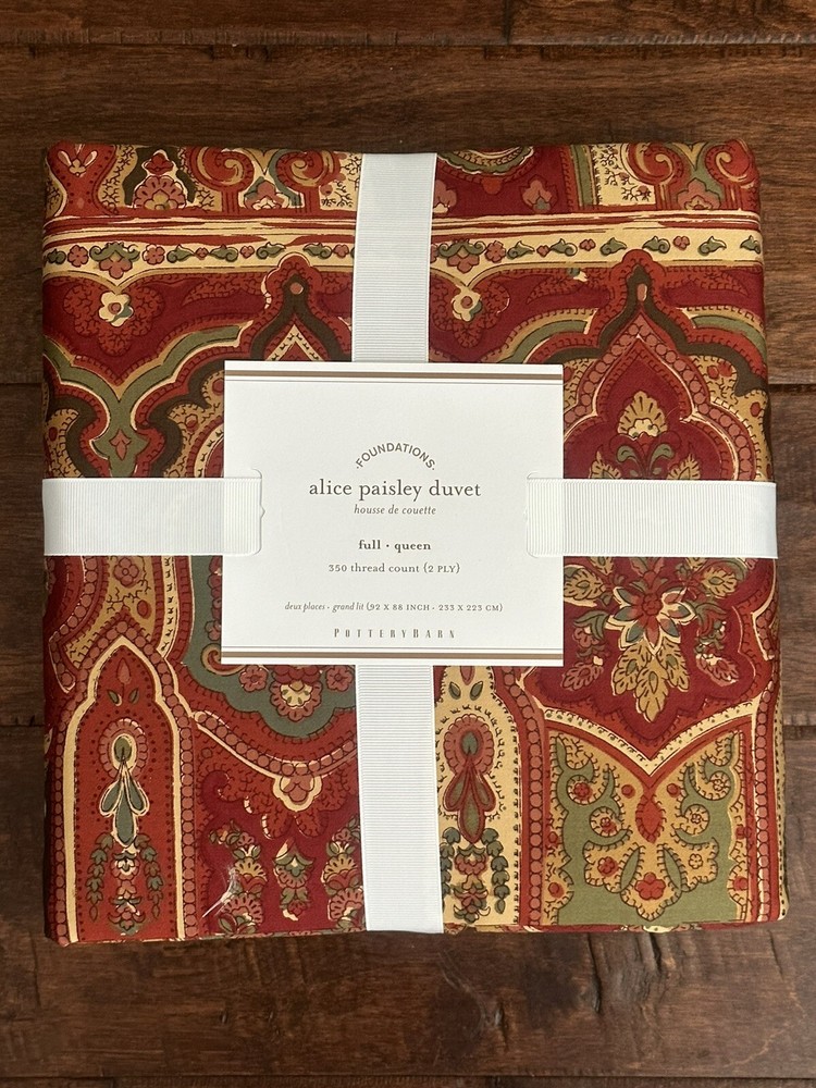 Pottery Barn Alice Red Paisley Full Queen Duvet NEW. Duvet only