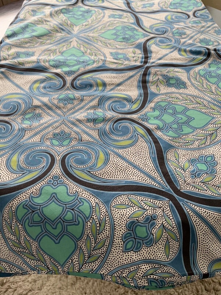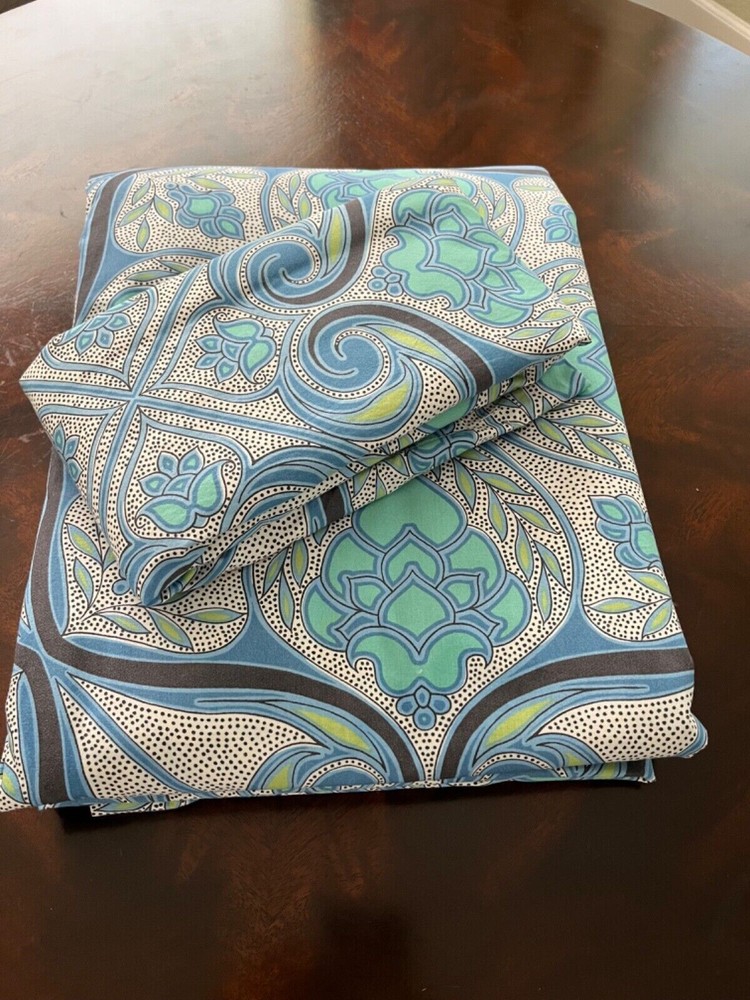 This duvet cover is stunning—the aqua blue Moroccan tile design brings such a rich, exotic vibe to my bedroom. The quality is amazing, and even though it's used, it looks almost new. The shams complete the set beautifully. Super soft and authentic Pottery Barn—totally worth it! Would buy again in a heartbeat.
