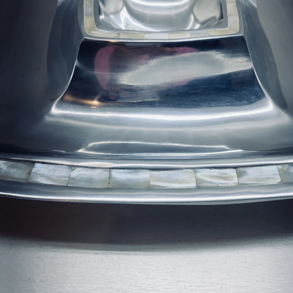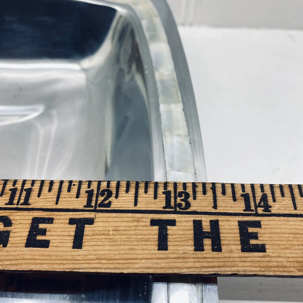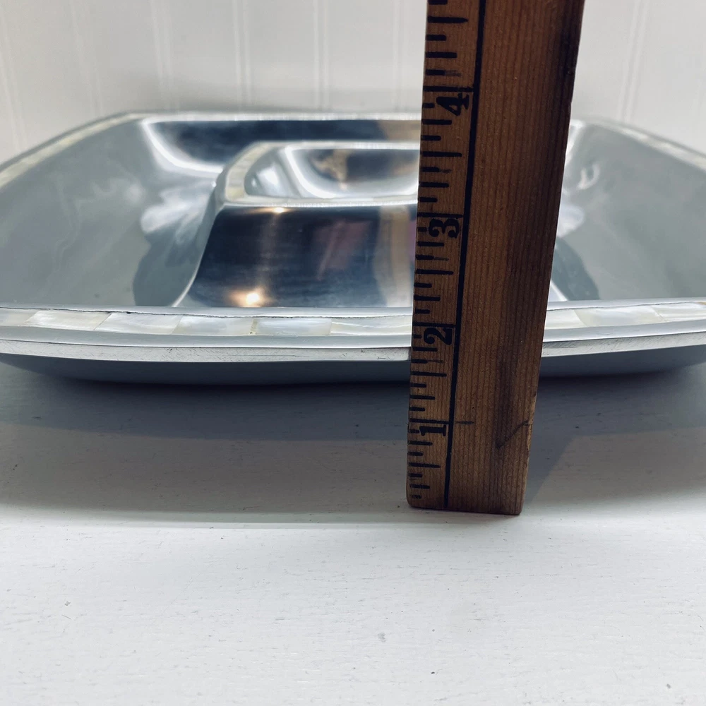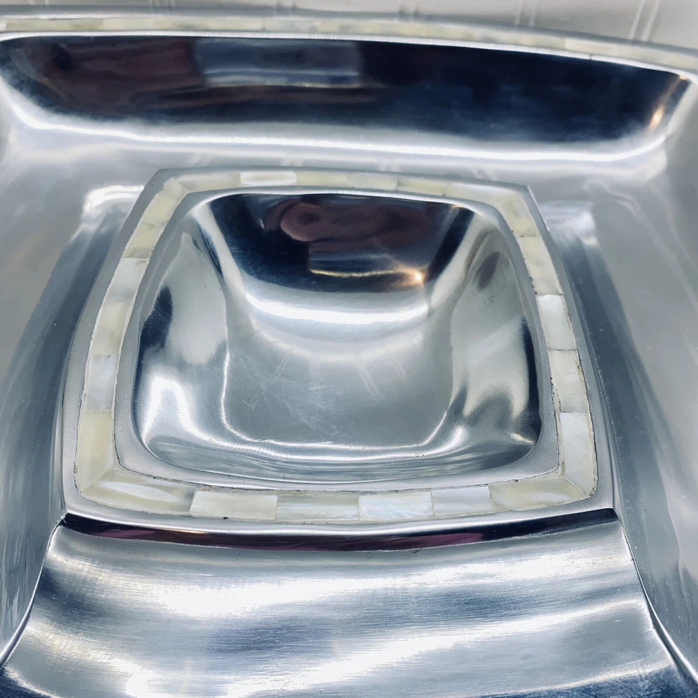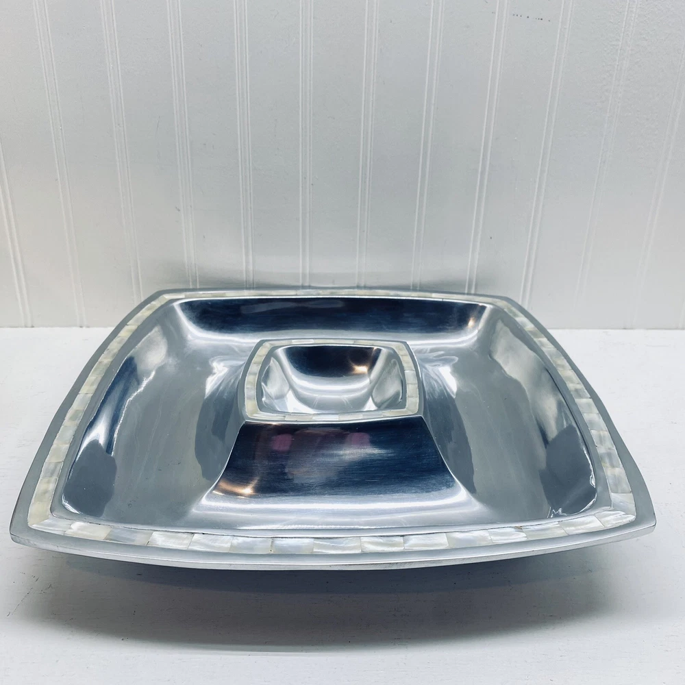 Pottery Barn Aluminum tray with mother of pearl inlay serving tray platter chip and dip. 13 1/2” long 13 1/2” wide 1 3/4” tall.