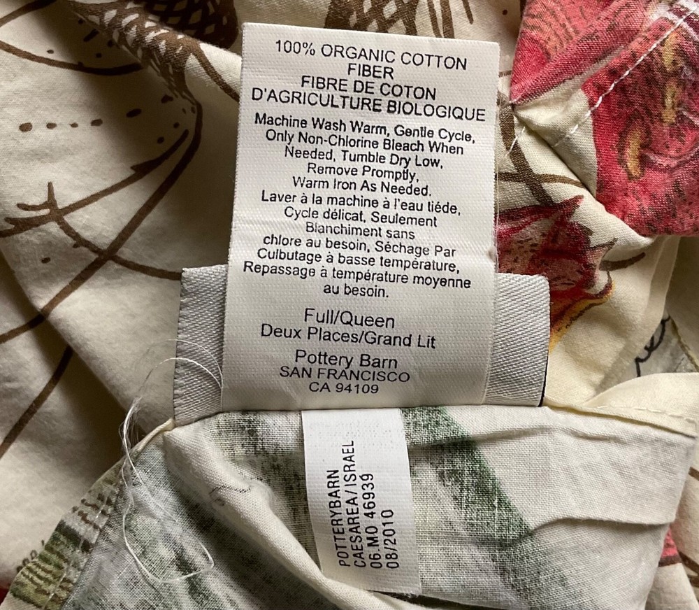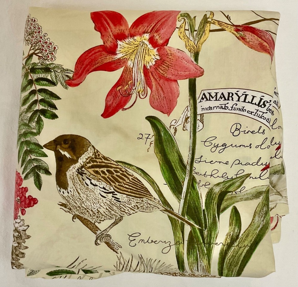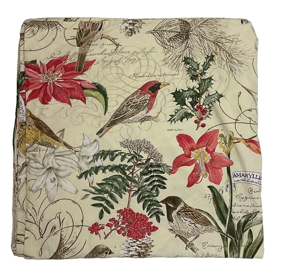 Pottery Barn amaryllis Winter Bird Queen Duvet with inner ties and button closure. The duvet was made in Israel of 100% organic cotton that is of the classic Pottery Barn quality. Let this duvet cheer up the dark winter days! Please see the condition description for a small repaired 3 corner tear.