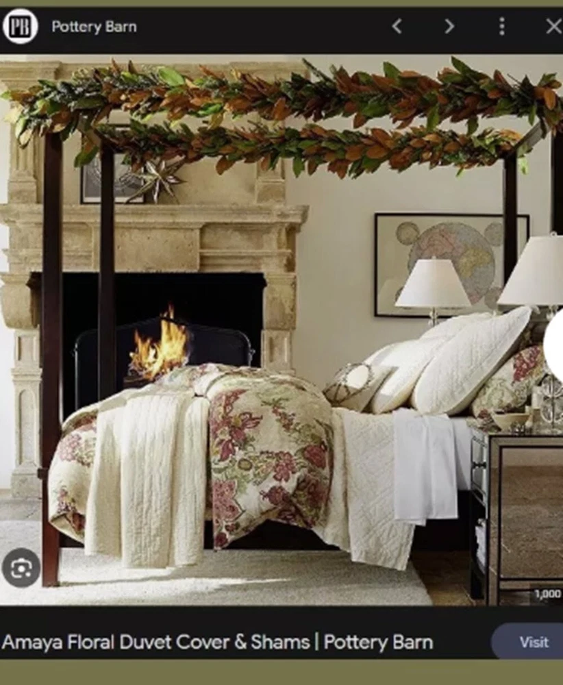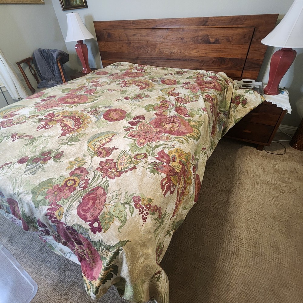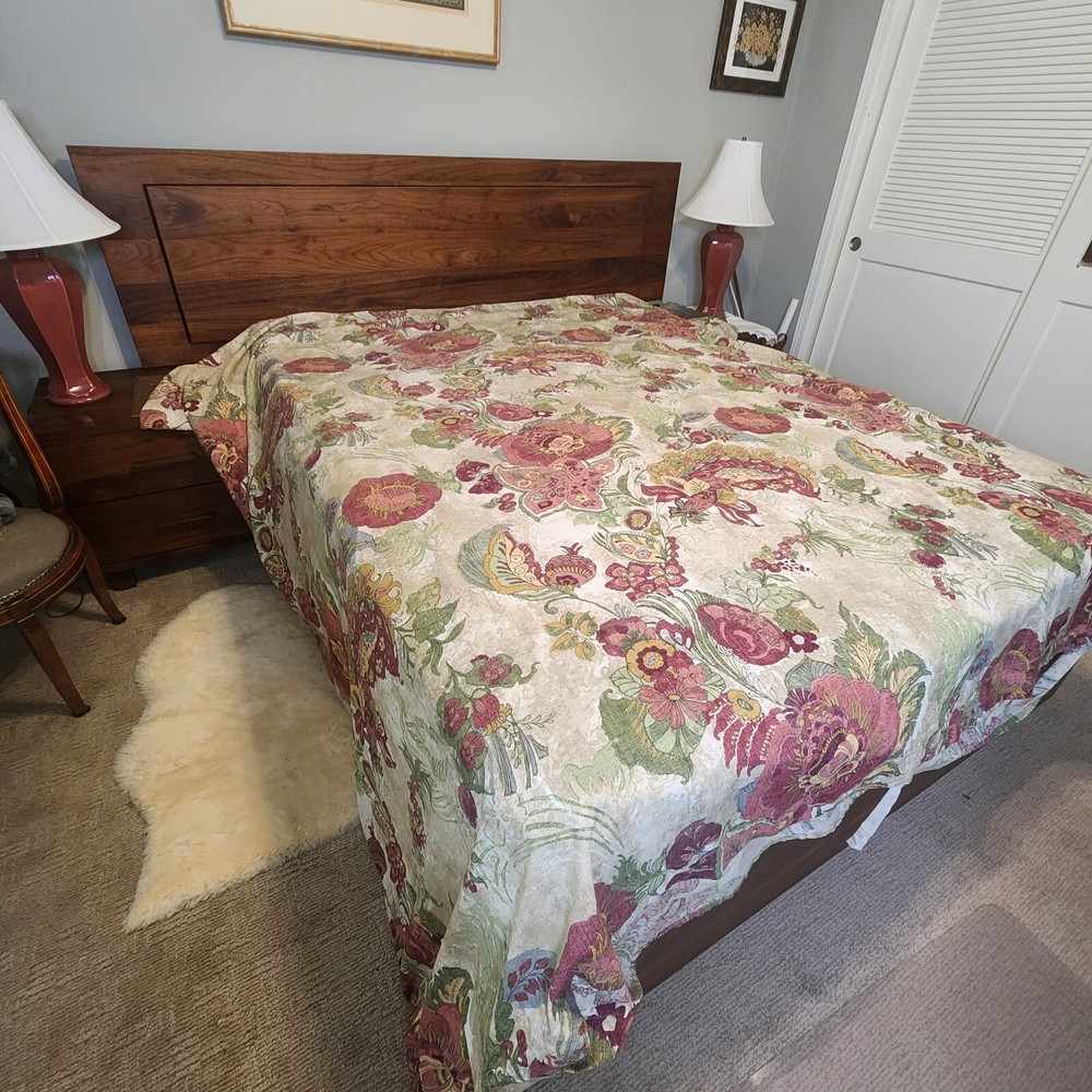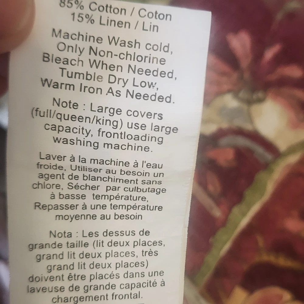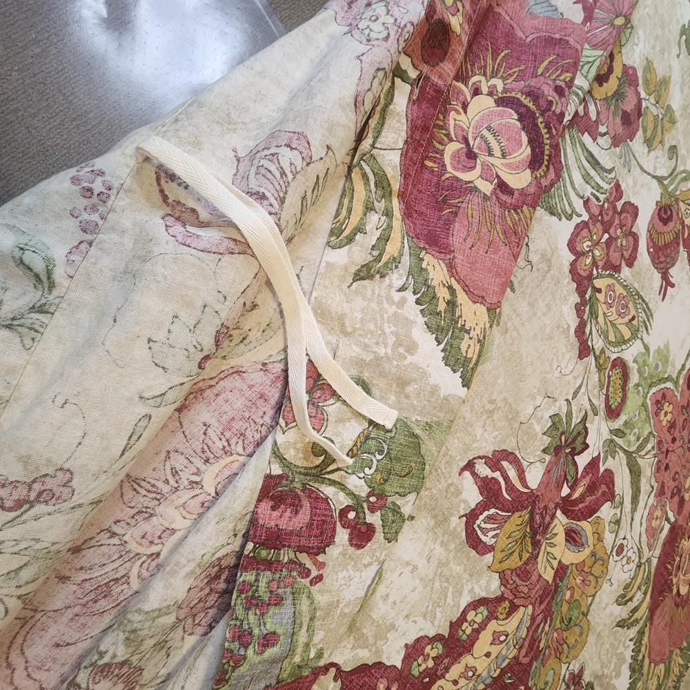 Pottery Barn Amaya Palampore King Size Duvet Cover Linen Cotton Burgundy Floral Reverses to same print. Inside ties, button closure. Shown on queen size bed, is swallowed up - king size - 108" wide x 92" long.