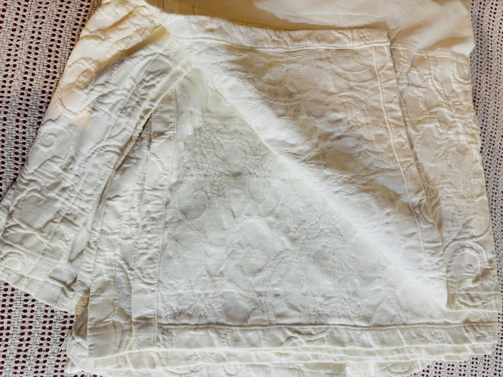 The sheet and pillowcase are both in lovely condition! Both items were wrapped well and arrived promptly. My communication with the seller was also very congenial. I hope there are opportunities to buy from him again. Highly recommended.