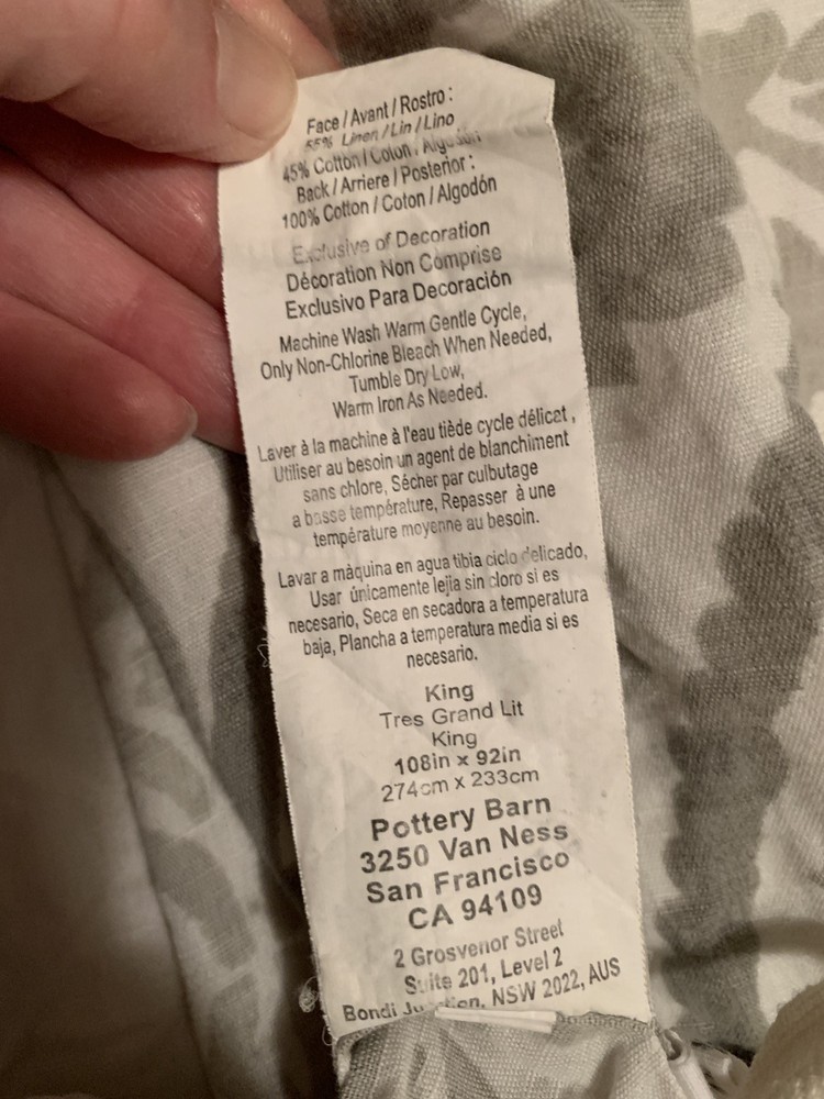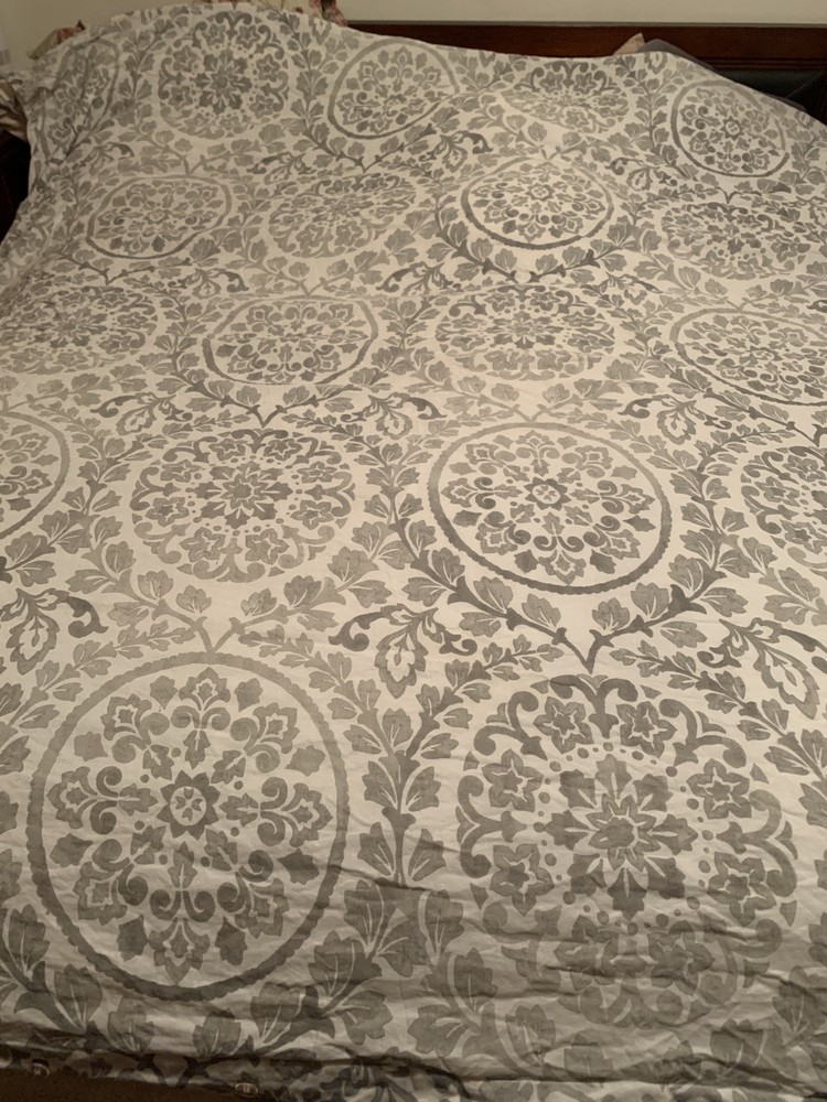 Found at a humane society resale store. There are no flaws. Really beautiful pattern. I see some standard shams in this pattern for sale by other sellers. Will update if I find matching shams...