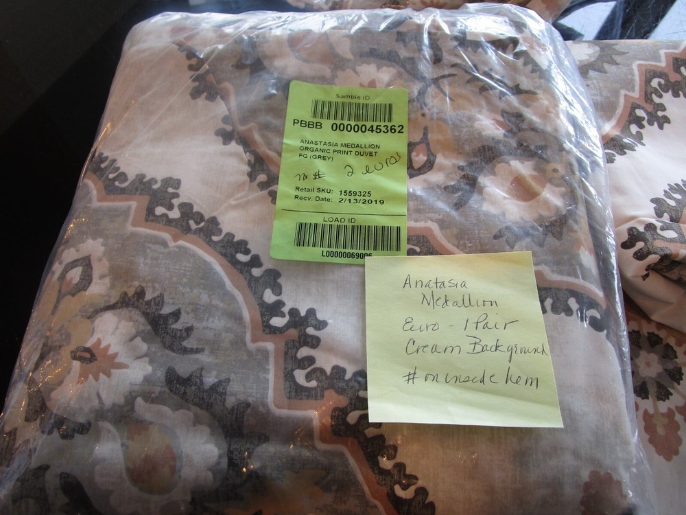 Up For Auction is - Pottery Barn Anastasia Medallion print duvet full queen grey 2 Euro shams photo photo shoot sample we purchased many item that were used only for Pottery Barn photo shoot sample , may be missing all inside tags- has numbers inside the shams on the hem. cannot be seen outside Smoke and pet free home.