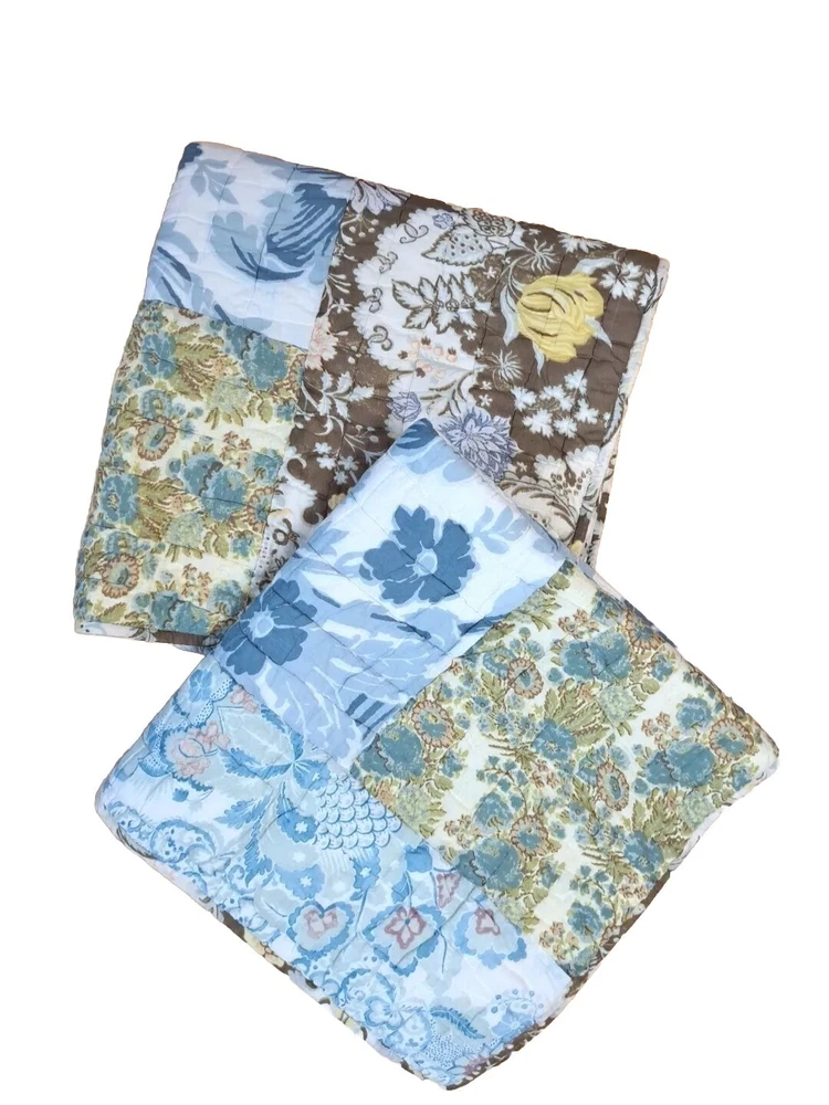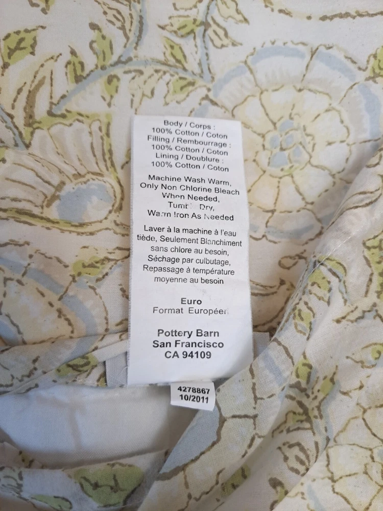 Pottery Barn Anna Maria Quilted Patchwork Euro Sham Cotton Floral 25"x 25" Pair This is pre-owned and sold as is Gently used, very clean Maybe some shrinkage from washing Color is still vibrant Measurements are approximate: 25"x25" square The overall condition is very good PLEASE SEE PHOTOS FOR DETAILS/REFERENCE/CONDITION Computer monitor and lighting, etc.can show colors differently I DO NOT ACCEPT RETURNS Please take time to view all of the photos and read all descriptions before purchasing SHIPS TO U.S ADDRESSES ONLY THANK YOU FOR LOOKING AND FOR YOUR INTEREST!
