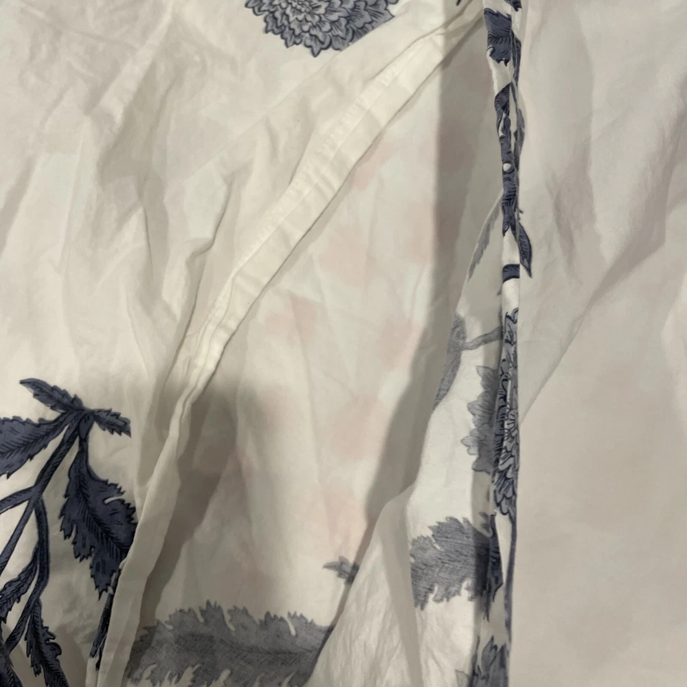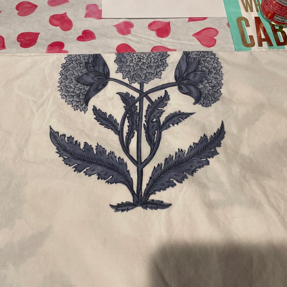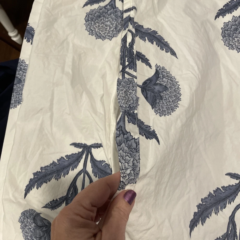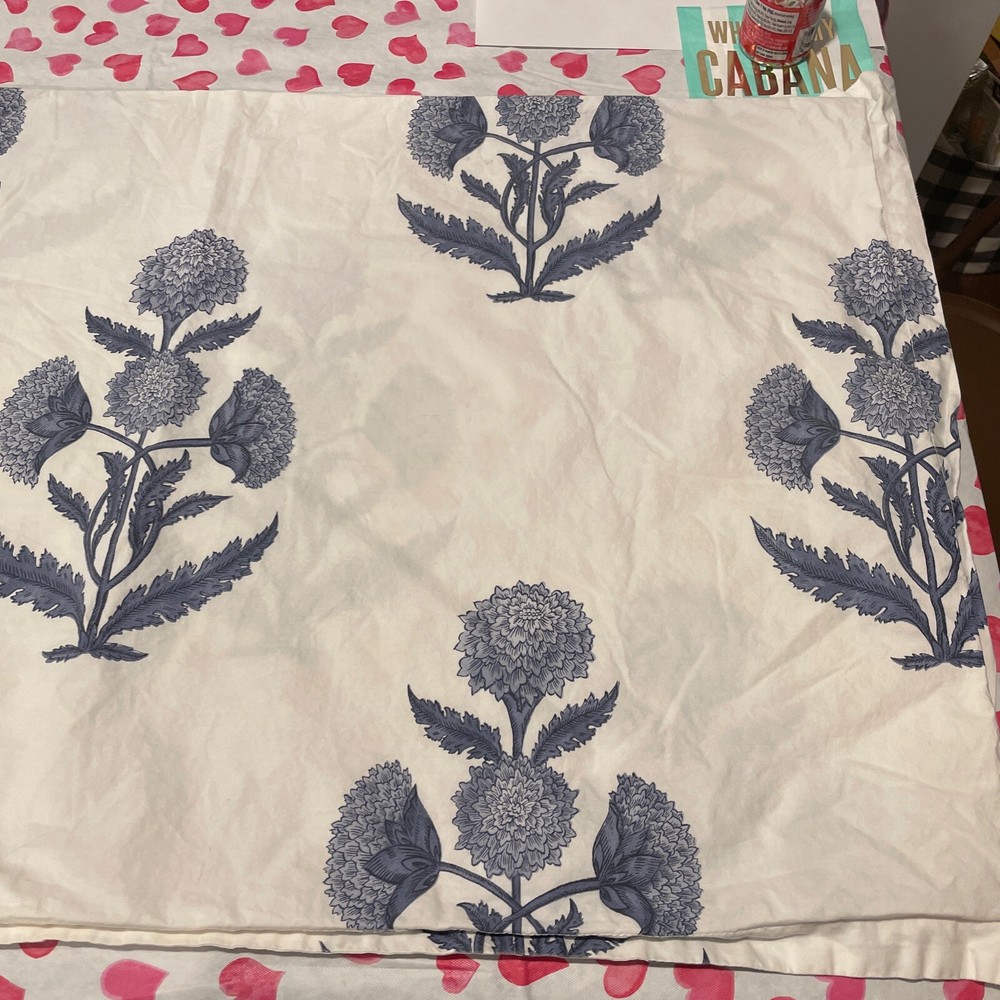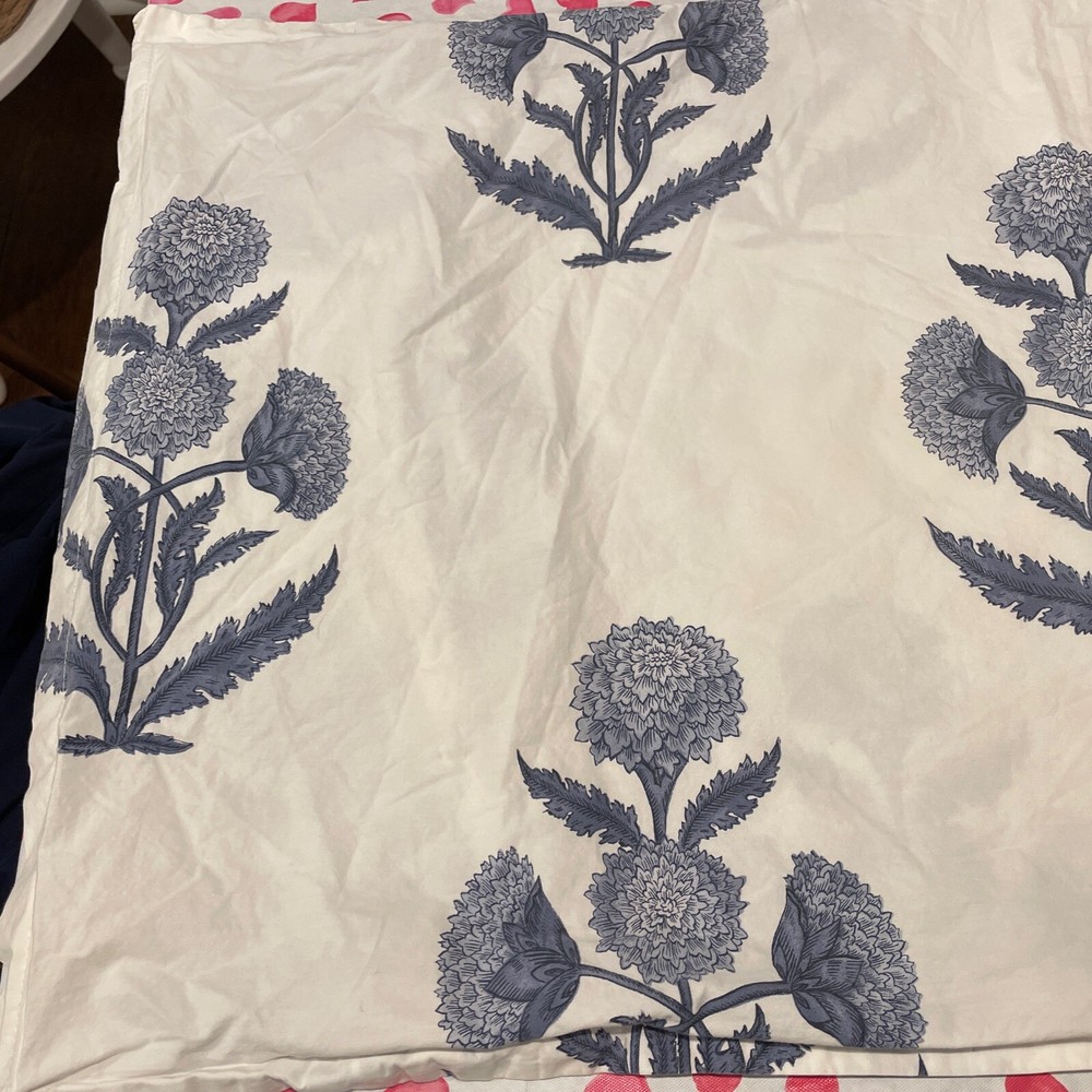 One King sham. Small pinhole where the tag was. Sorry about the hearts that show through on my table. Smoke free home.
