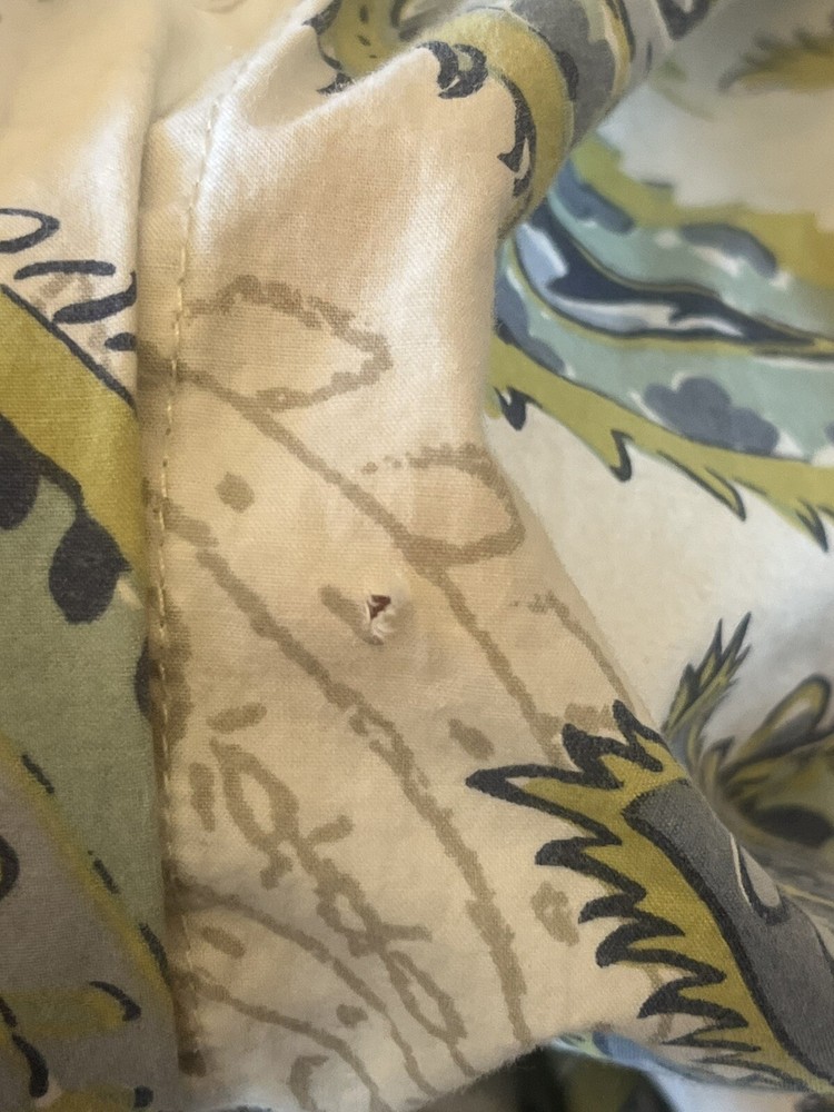 Unless otherwise described, items are used / pre-owned and I am not the original owner. Items may contain minor flaws such as: small stains, odor, rips, fading or discolorations. Major flaws will be noted, described and shown in photos. It is miss some buttons and has a small hole see photos