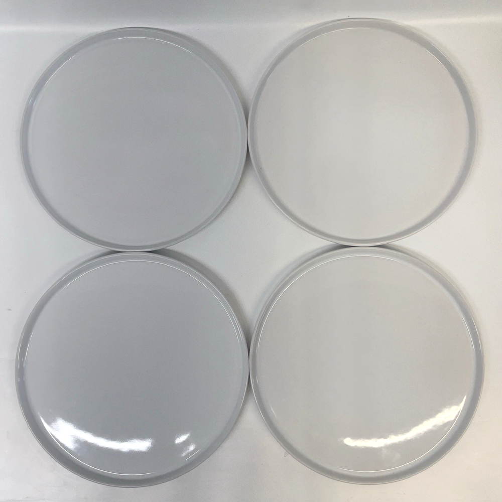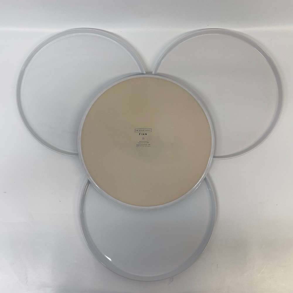 The Pottery Barn Apartment Finn Stoneware 4 Dinnerware Plates are a minimalist and contemporary addition to any dining set. Made of porcelain with a glossy white finish, these round 10.5" dinner plates are modern and perfect for all occasions. Pre-owned. No chipping, cracking or crazing. Only minor utensil marks. See pictures for details