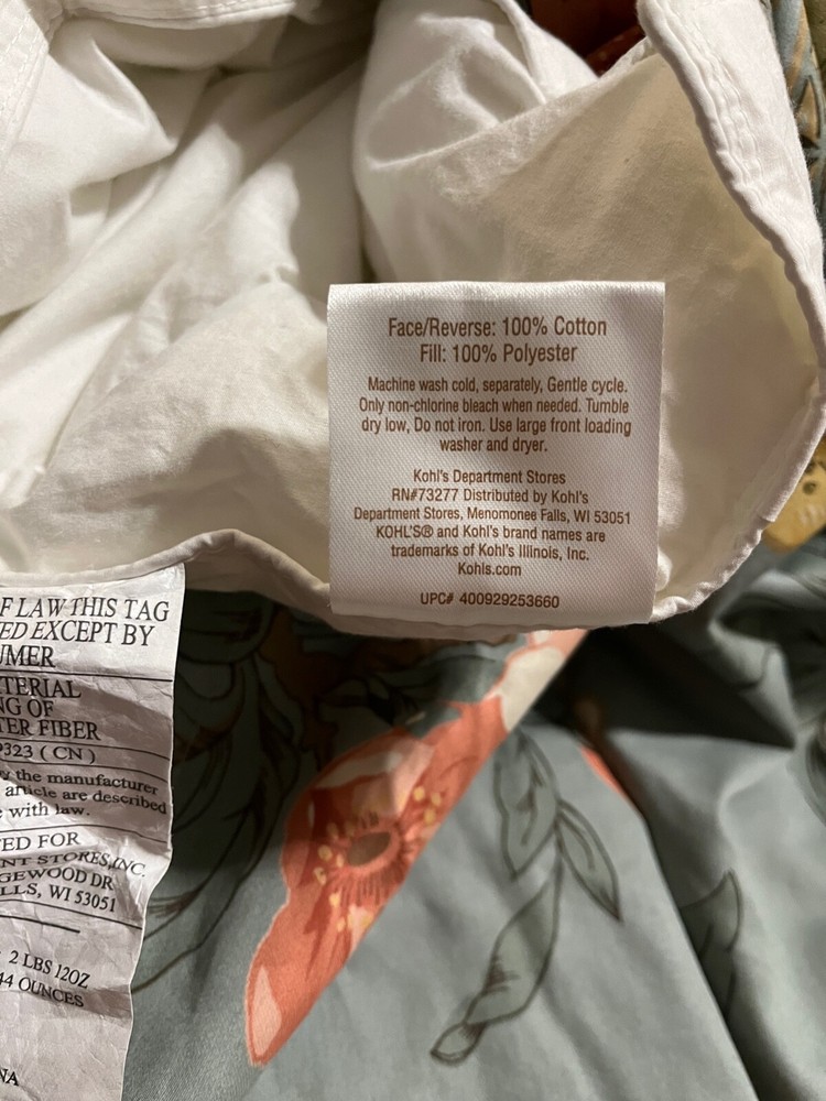 Pottery Barn Arianne Blue Bird Duvet Cover Queen w/ Kohl's Home Classics Full/Queen 90" x 90" Comforter Shell - 100% Cotton Filling - 100% Polyester