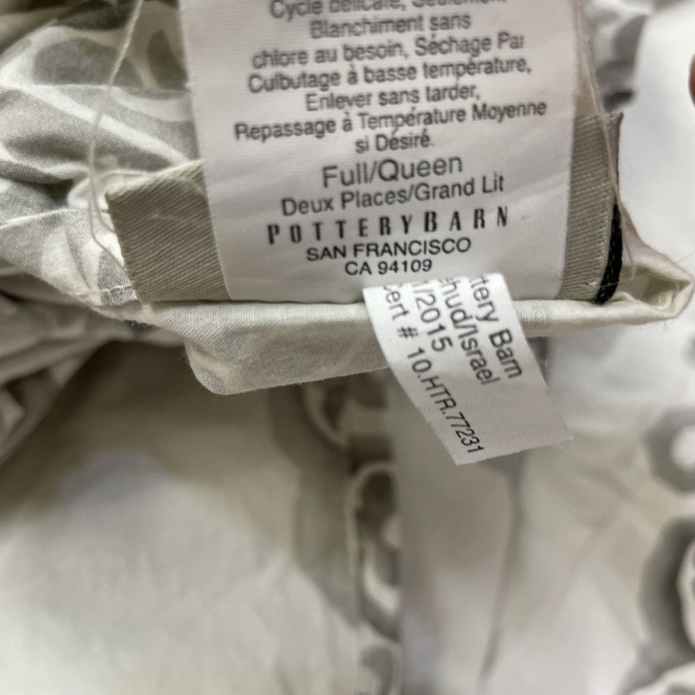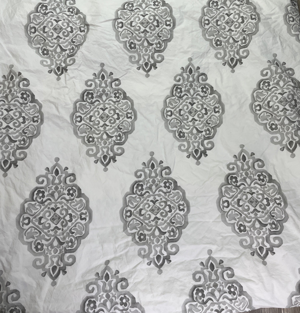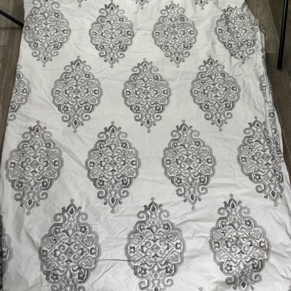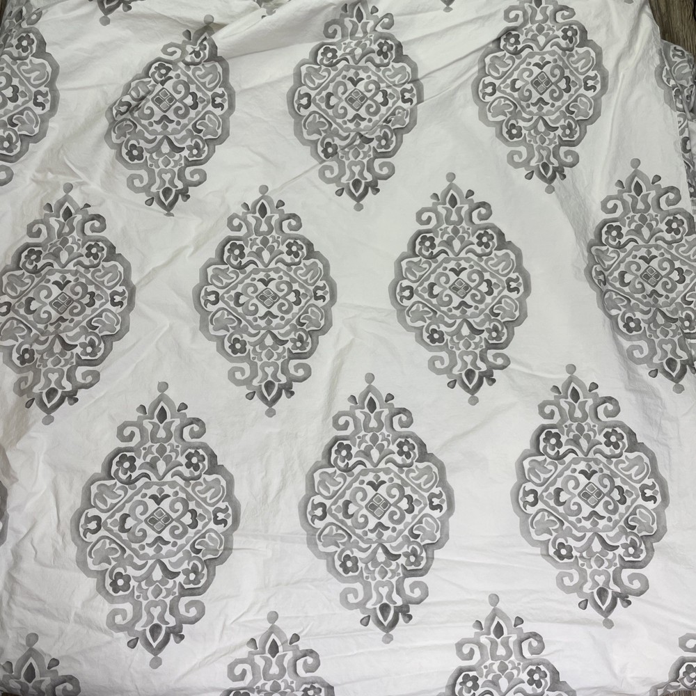 Pottery Barn Asher Medallion Percale Duvet Gray Queen/Full Organic Cotton...
