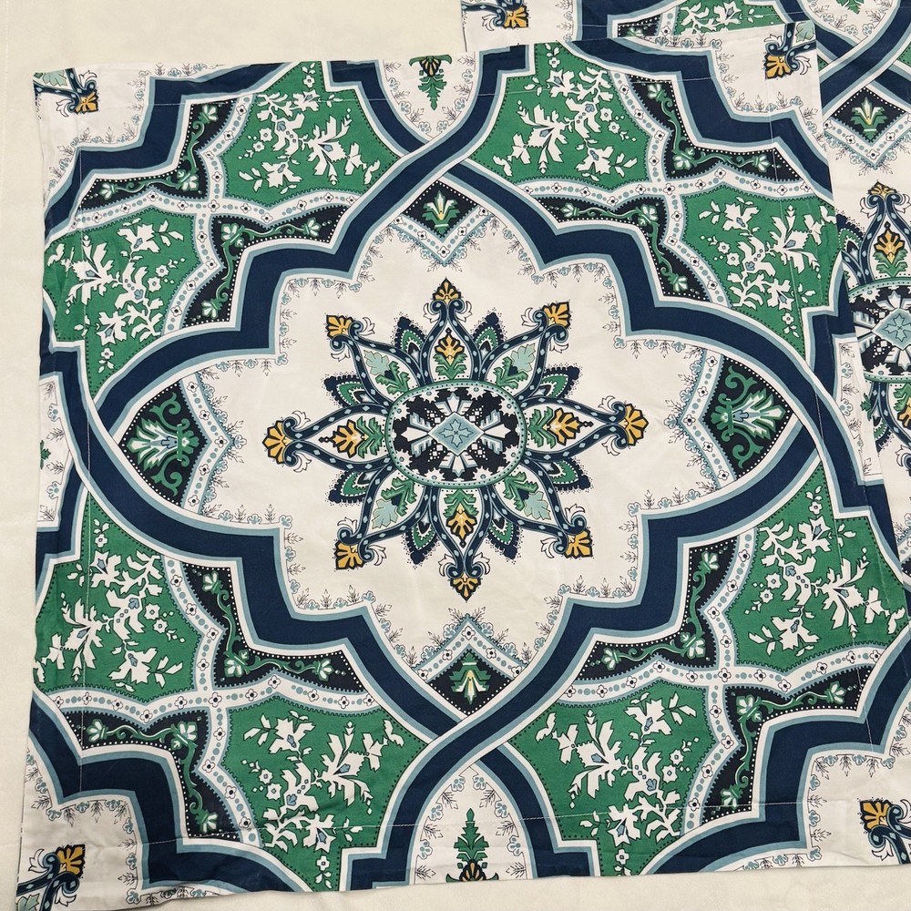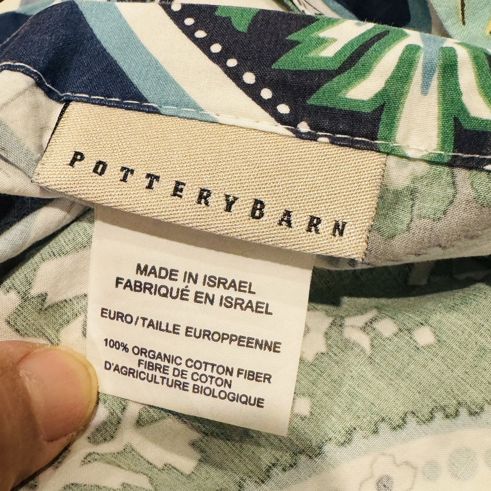 Pottery Barn Ashton Medallion Pillow Shams Set 2 Euro Organic Cotton Blue Green