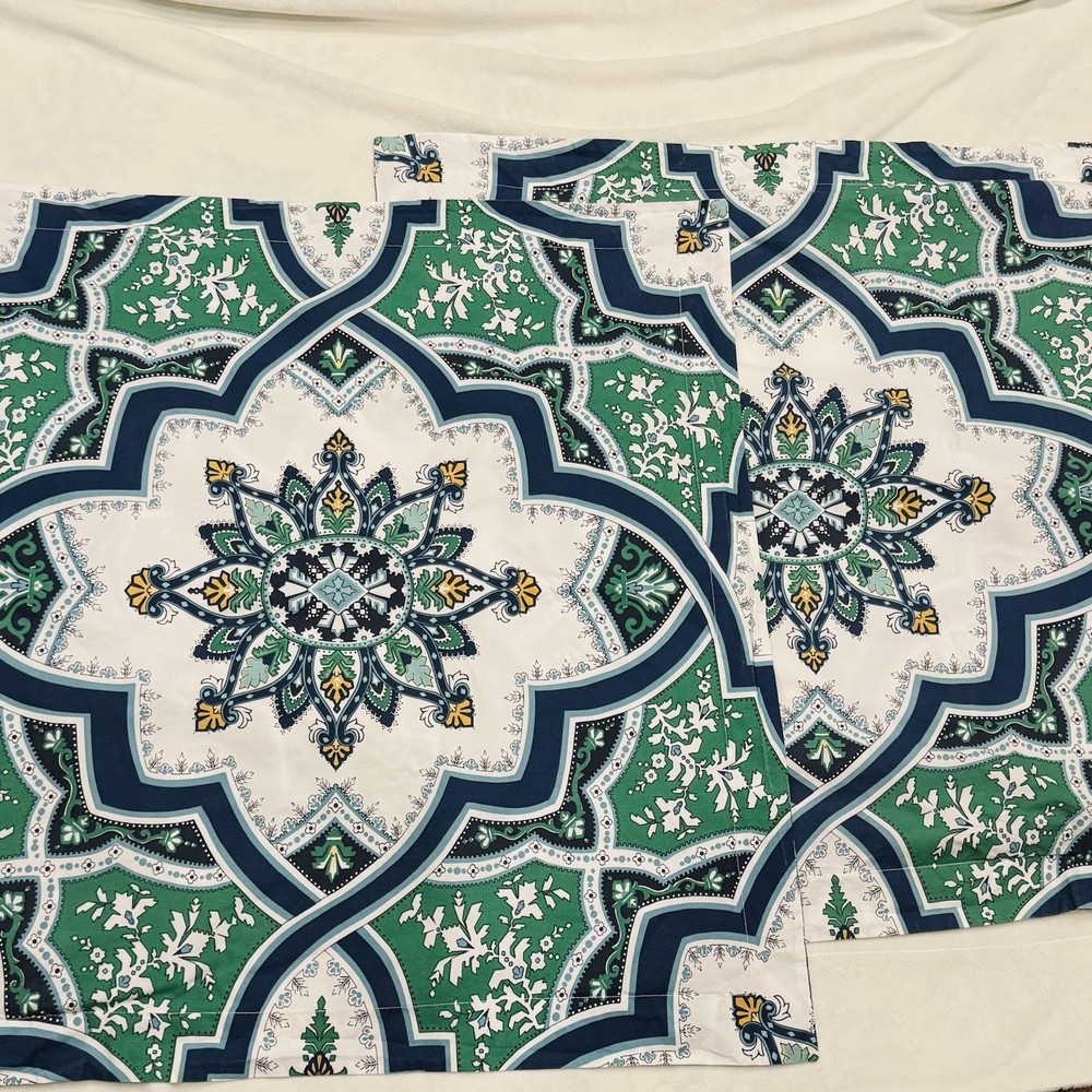 Pottery Barn Ashton Medallion Pillow Shams Set 2 Euro Organic Cotton Blue Green...