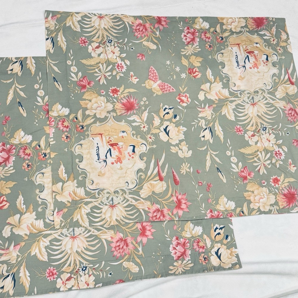 Pottery Barn Asian Floral Butterfly Geisha Girl Sage Green Standard Sham Set 2